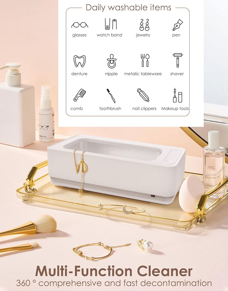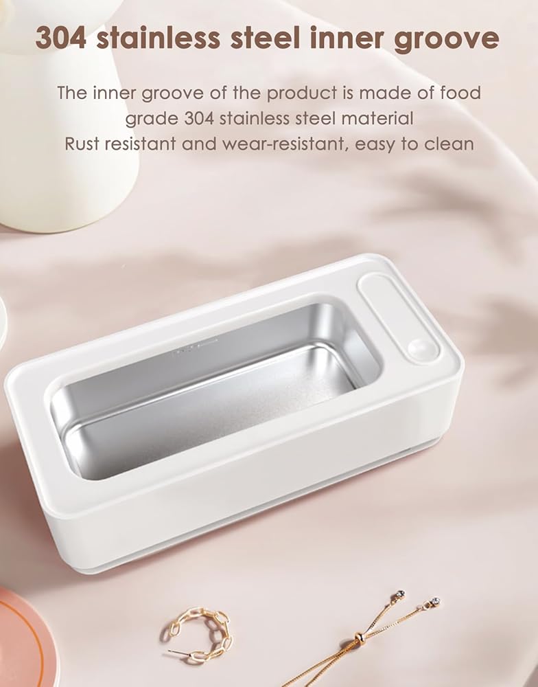 سهل التنظيف - ببساطة املأ الخزان بالماء، وأدخل العناصر الخاصة بك، وسترى نتائج تنظيف المجوهرات الاحترافية. يمكن إضافة القليل من صابون الأطباق/اليدين السائل لتحسين التنظيف، ولكن كل العمل يتم عن طريق الموجات فوق الصوتية. آلة التنظيف القوية بالموجات فوق الصوتية تنظف في دقائق دون الإضرار بالأشياء الحساسة، وهي هدية رائعة لحبيبك أو عيد ميلاد أصدقائك أو عيد الميلاد.