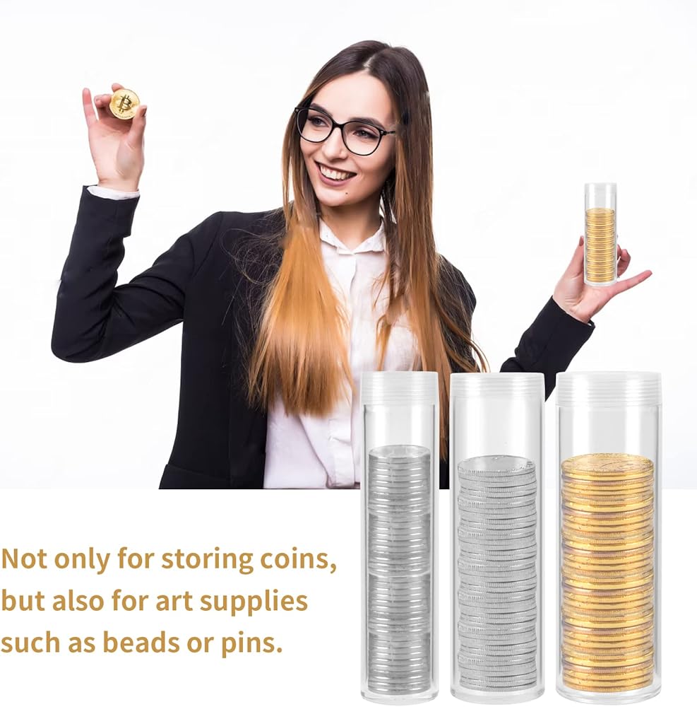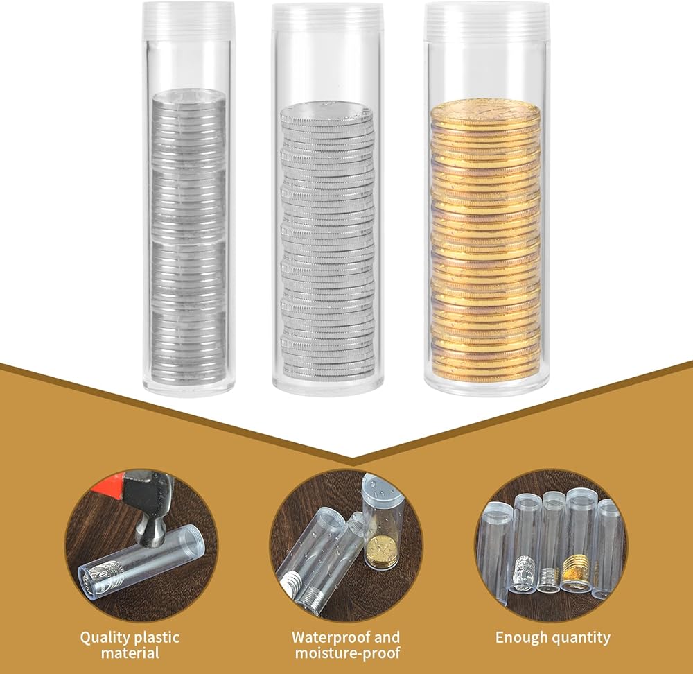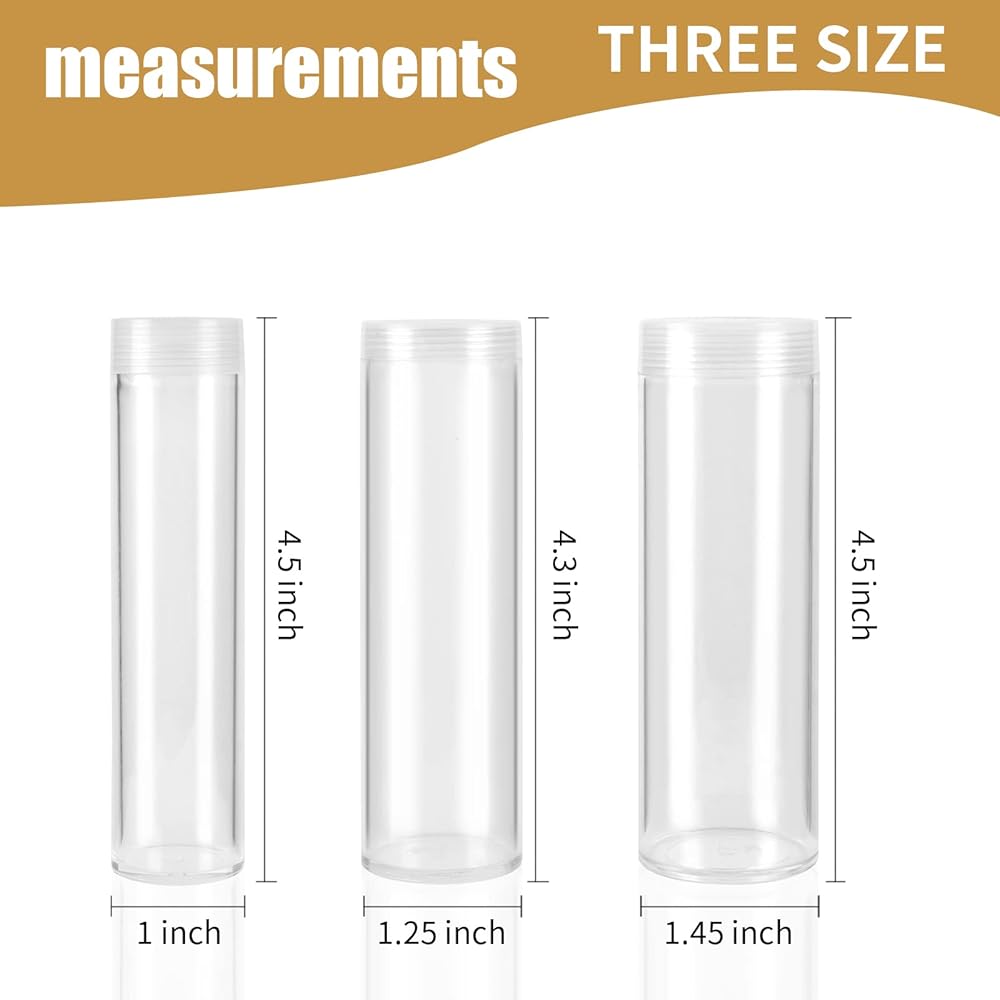 Coin Tubes Assorted Sizes Half-Dollar Coin Storage Tubes Quarter Coin Tubes Coin Storage Tubes Pennies Clear Plastic Coin Tubes Nickel Coin Tubes Coin Holders for Dimes For Coin Collection