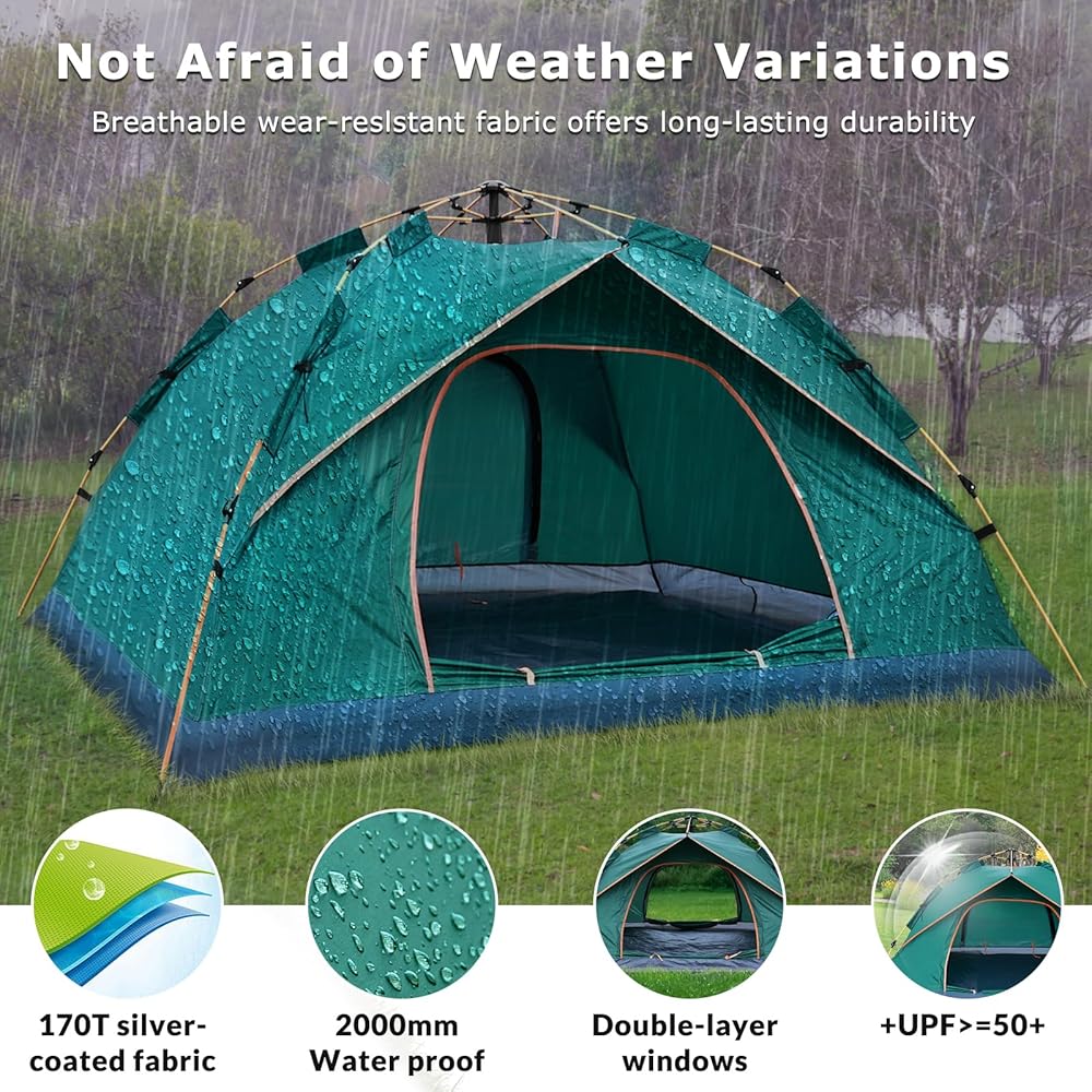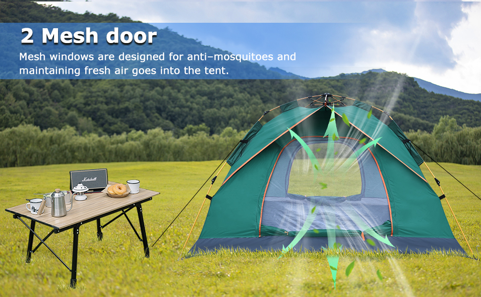 【 خيمة تخييم بتصميم قابل للتنفس 】: خيمة OSWIN للرحلات الفورية تتسع لـ 3-4 أشخاص مع بابين بسحاب لسهولة الدخول والإغلاق السلس. توفر الشاشة الشبكية ذات السحاب الداخلي بالإضافة إلى طبقة النايلون ذات السحاب الخارجي القدرة على التبديل بسهولة بين نفاذية الهواء العالية والخصوصية الكاملة. تسمح لك بالاستمتاع بمحيطك في خيمة خارجية دون القلق بشأن دخول البعوض والحشرات.