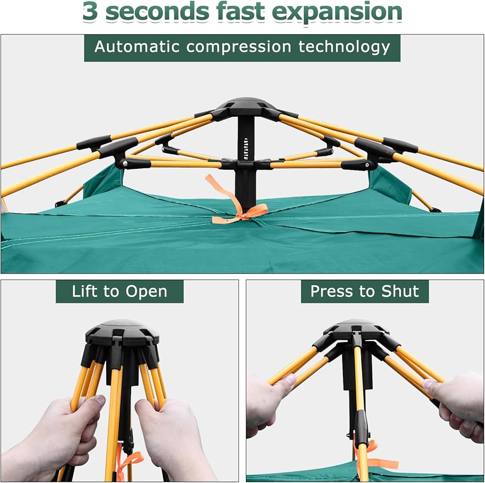 [بناء سهل وسريع]: خيمة OSWIN المنبثقة الفورية، يمكن للنظام الهيدروليكي أن يفتح الخيمة بسرعة في ثلاث ثوانٍ، حتى تتمكن من إعداد الخيمة في دقيقة واحدة. ما عليك سوى رفع الجزء العلوي من الخيمة، وإخراج الآلية العلوية، ثم النقر على المفصل السفلي لتثبيته في مكانه. من السهل تفكيكها، مما يوفر لك الوقت. يمكن لشخص واحد تركيبه بسهولة، وسهل الاستمتاع بمتعة التخييم.