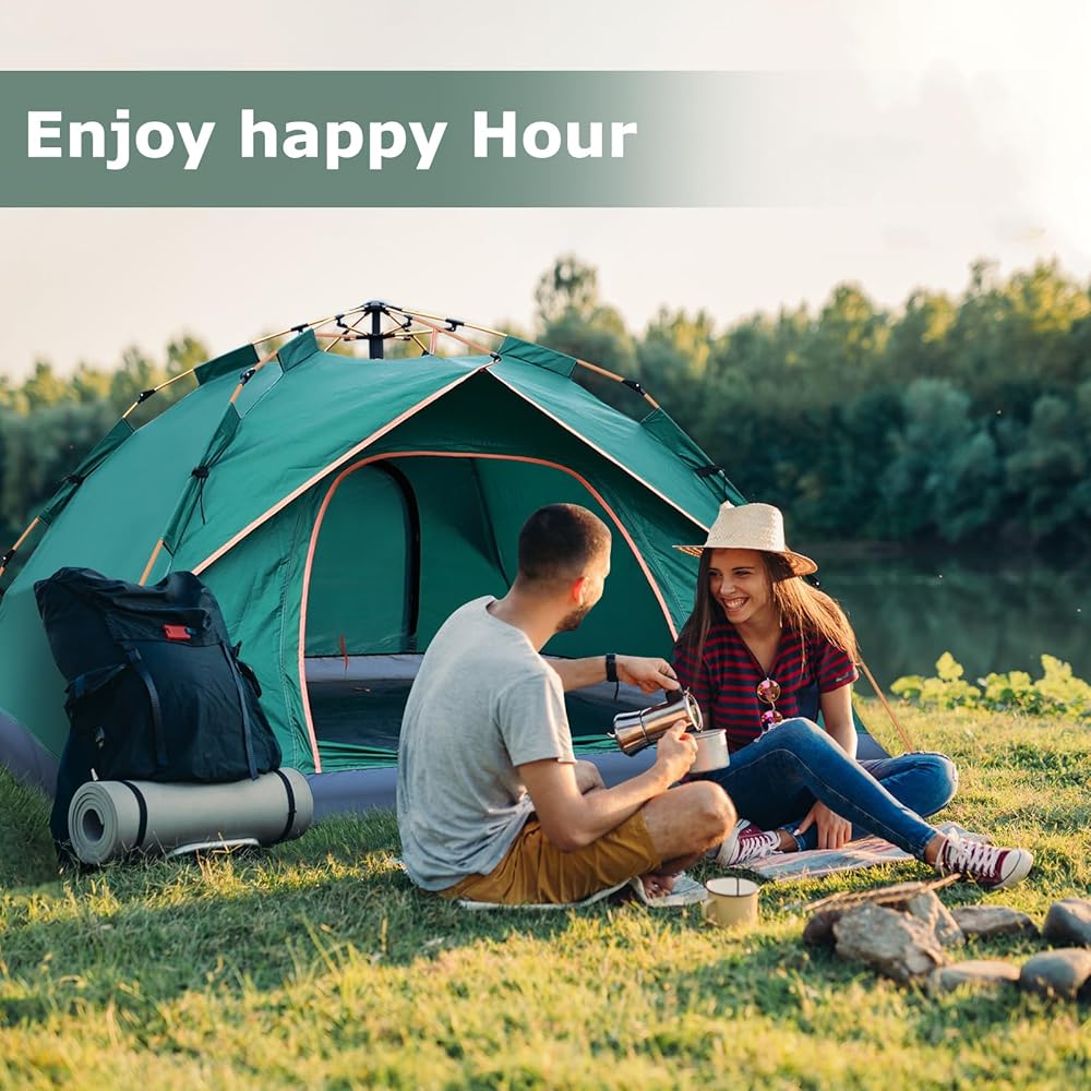 【 خيمة تخييم كبيرة محمولة تتسع لـ 3-4 أشخاص 】: حجم الخيمة: 210 × 200 × 135 سم/82.7 × 82.7 × 55.1 بوصة، مساحة كافية لـ 3-4 أشخاص للتخييم، وهي خيمة طويلة توفر مساحة علوية كافية لـ 3 أشخاص - 4 أشخاص للجلوس بشكل مريح في الخيمة.