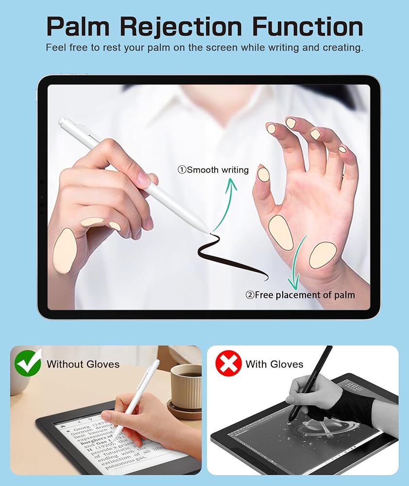 🖊️【وظيفة رفض راحة اليد】مع تقنية EMR، يمكنك الكتابة بشكل مريح دون القلق بشأن تداخل لمسات راحة اليد مع الشاشة. وهذا يضمن عدم مقاطعة إبداعك عن طريق اللمسات العرضية، مما يحافظ على سير العمل بسلاسة.
