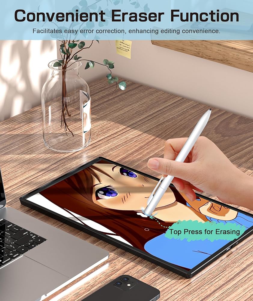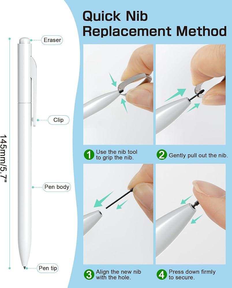🖊️【وظيفة الممحاة وطرف قابل للاستبدال】تسمح وظيفة الممحاة المريحة عند الطرف بتصحيح الأخطاء بسهولة، مما يجعل عملية التحرير أكثر ملاءمة. وهذا يضمن أن تظل إبداعاتك الرقمية مثالية. بالإضافة إلى ذلك، قمنا بتضمين 5 رؤوس أقلام قابلة للاستبدال ومشبك قلم.