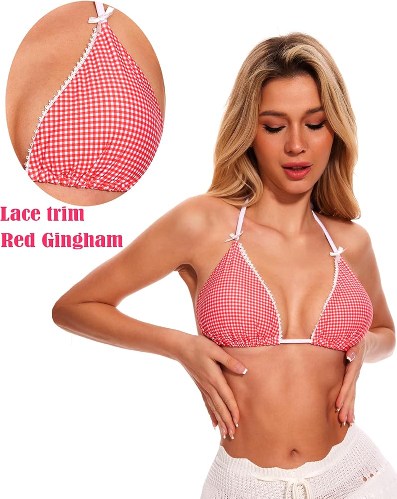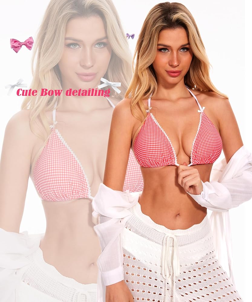 - السمات: قمصان بيكيني مزخرفة بالدانتيل فقط، بيكيني علوي مثلث، قمصان بيكيني من القماش القطني، قمصان سباحة مربعة، بيكيني كوكيت لطيف، قمصان لباس سباحة رافعة للأعلى