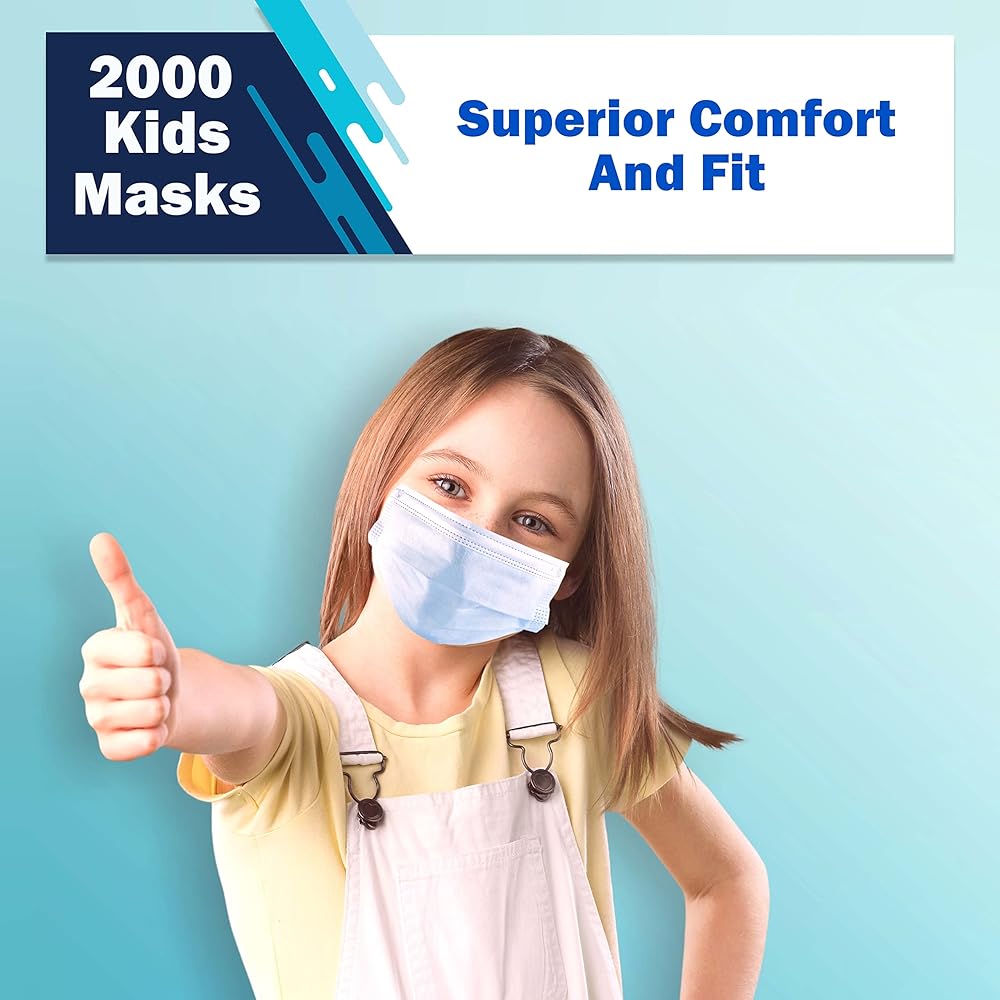 2000 قناع وجه للأطفال للاستعمال مرة واحدة، أقنعة وجه بالجملة (40 صندوقًا، 50 قطعة/صندوق)، أقنعة وجه سميكة غير منسوجة قابلة للتنفس مكونة من 3 طبقات وقابلة للتعديل