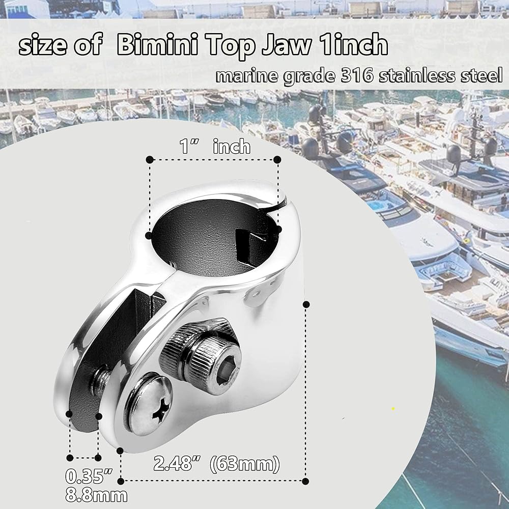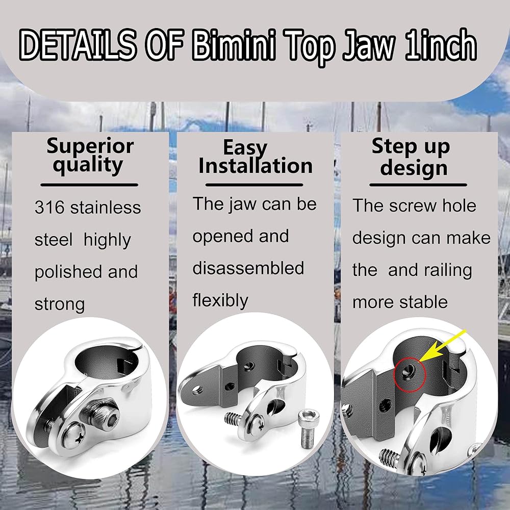 تتميز المشابك العلوية بيميني بقطر داخلي يبلغ قياسه 1 بوصة، لذا يمكن أن تكون حوامل البيميني العلوية هذه مناسبة لأعمدة أو أنابيب مقاس 1 بوصة. يتم تركيب شريحة الفك المفصلية على درابزين القارب الخاص بك دون الحاجة إلى تفكيك الدرابزين.