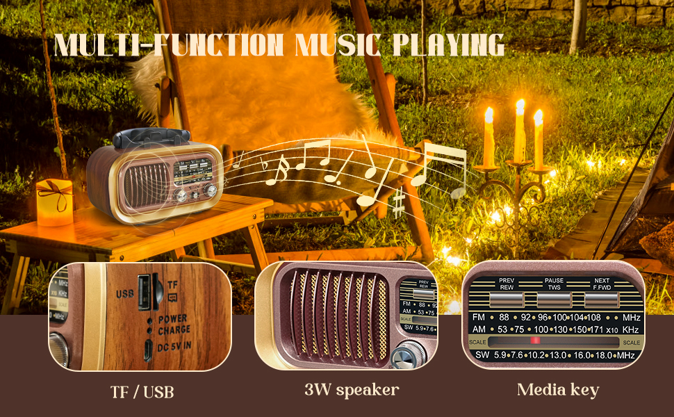ليس مجرد راديو AM FM على الموجات القصيرة، بل أيضًا مكبر صوت بلوتوث يسمح بتشغيل الموسيقى المفضلة لديك عبر TWS وبطاقة TF وقرص USB (غير متضمن). صغيرة ولكن مع مكبر صوت فائق القوة. صوت الموسيقى الصادر من راديو الترانزستور عالٍ وغني ومتوازن. لا يزال بإمكانك السماع بوضوح حتى أثناء الاستحمام. سوف تندهش من جودة الصوت لهذا الراديو! (ملاحظة: لا يوجد مقبس سماعة الأذن)