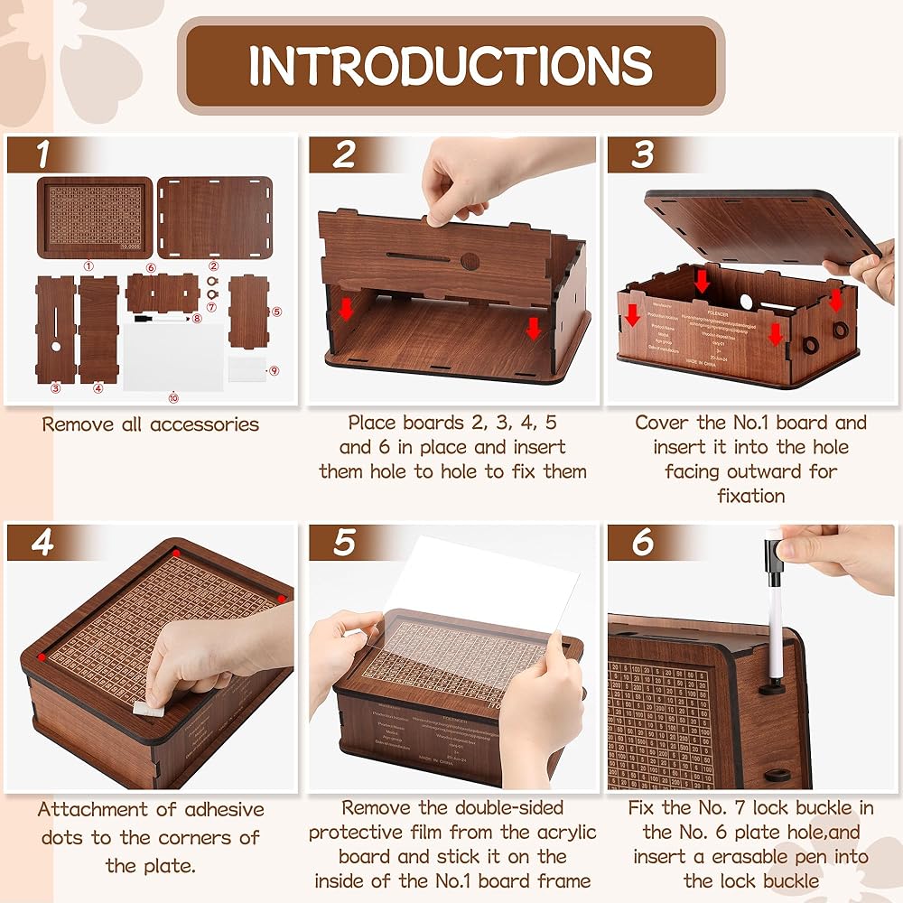 【سهل التجميع】لا حاجة إلى صمغ أو أدوات أخرى، يتم شحن صندوق المال الخاص بنا في حالة مفككة. من السهل جدًا تجميعه، ولا يستغرق سوى بضع دقائق فقط وبضع خطوات بسيطة لإكماله. يأتي مع قلم قابل للمسح حتى لا تترك أي علامات على صندوق المال الخاص بك ويمكن إعادة استخدام الحصالة