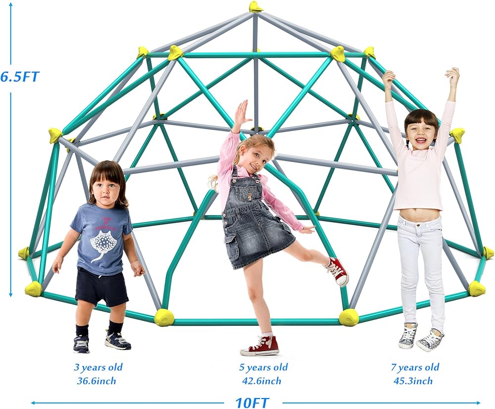 مركز لعب تسلق القبة الهندسية من ميراكس، برج تسلق للأطفال بطول 10 أقدام مع أرجوحة، فولاذ مقاوم للصدأ والأشعة فوق البنفسجية يدعم 1000 رطل، معدات لعب خارجية في صالة الألعاب الرياضية في الغابة، أخضر
