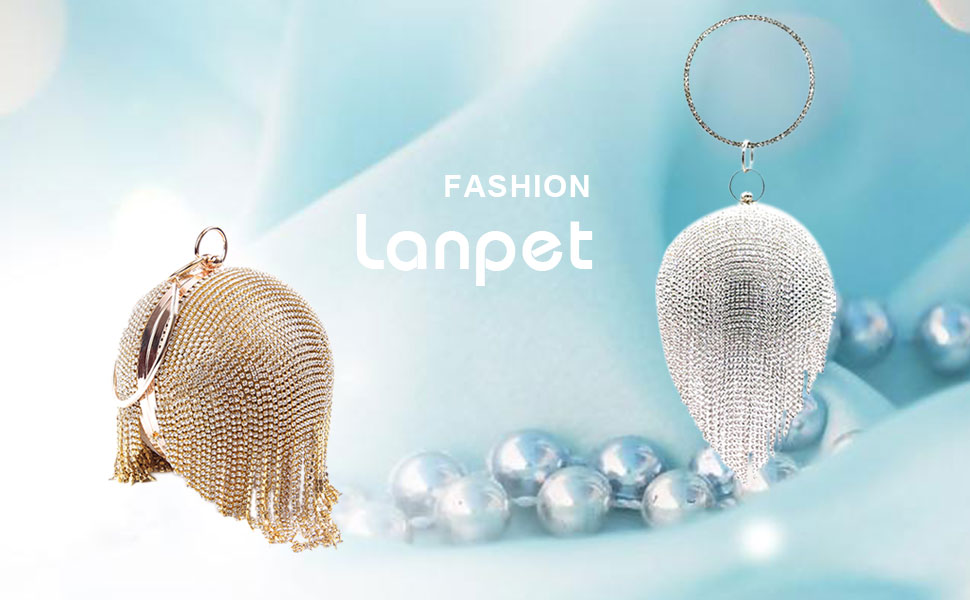 Lanpet المرأة الكرة المستديرة الكريستال مساء مخلب المحفظة شرابة حقائب حفلات الزفاف