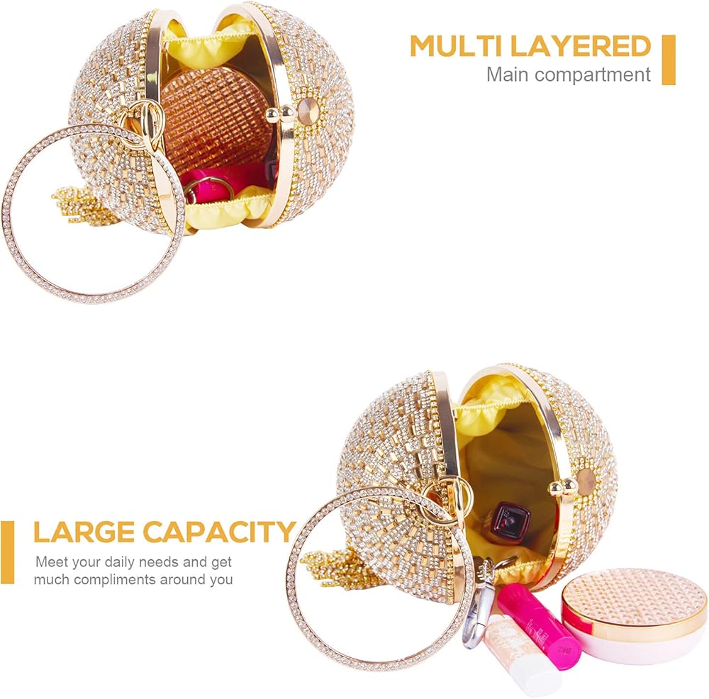 • →Diameter: Round ball -12.5cm(4.92inches) ,Handle -11cm(4.33inches), The capacity is big enough to put your ID ,a credit cards, money, car keys, small wallet, mini mirror, lipstick, gum, tissues or some makeups etc.