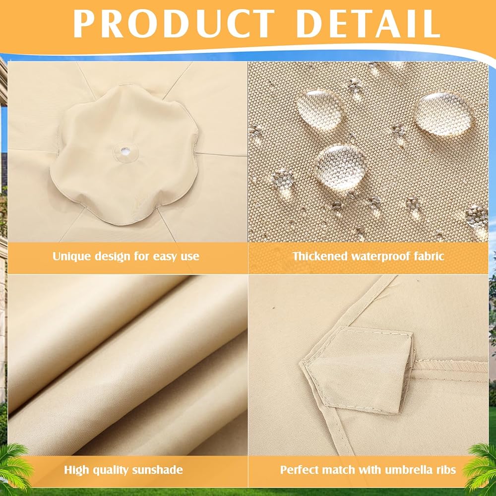 • الحجم المناسب: مصممة للتغطية المثالية، تتسع المظلة البديلة الخاصة بنا بشكل كبير بما يكفي لتثبيت أي مساحة؛ بقطر 104.33 بوصة ومناسب للأعمدة التي يبلغ طولها 4.36 قدم، وهو مثالي للباحات والساحات والمزيد؛ يستوعب هذا الظل الواسع بشكل أنيق 5-6 طاولات وكراسي، وهو مناسب لكل من الإعدادات السكنية والتجارية