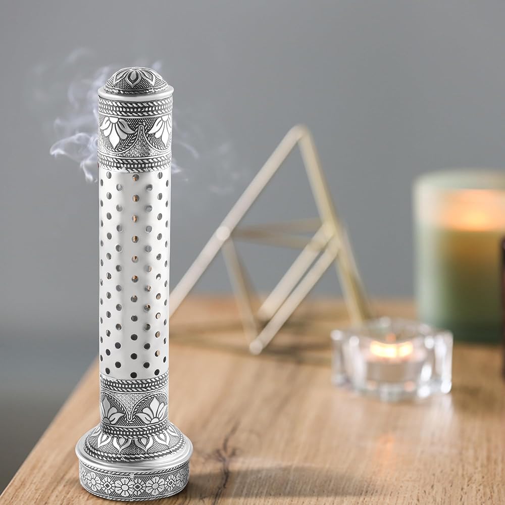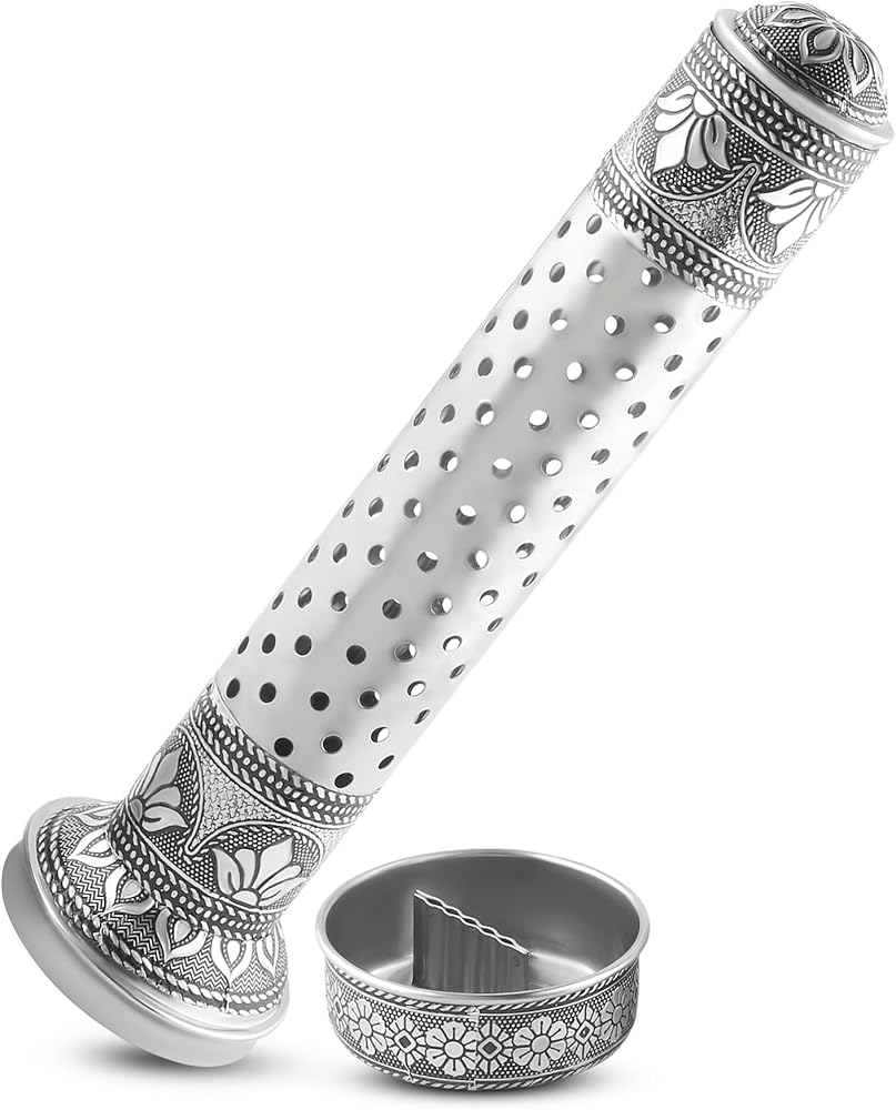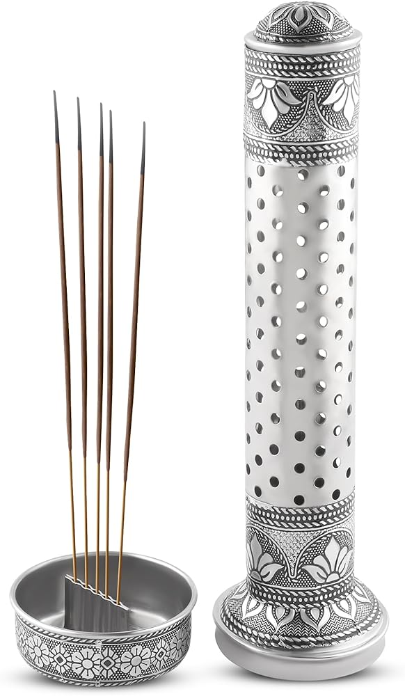 • HANDMADE - Stainless steel perforated agarbatti stand. This incense tower and organic ash catcher beautifully handmade from stainless steel by experienced craftsman. Compliment your yoga and meditation practice with this high quality & lovely incense burner