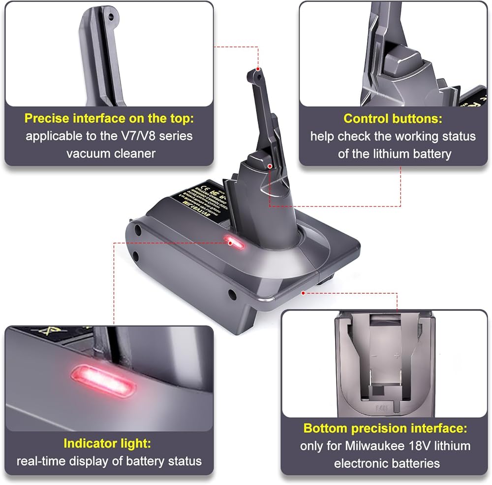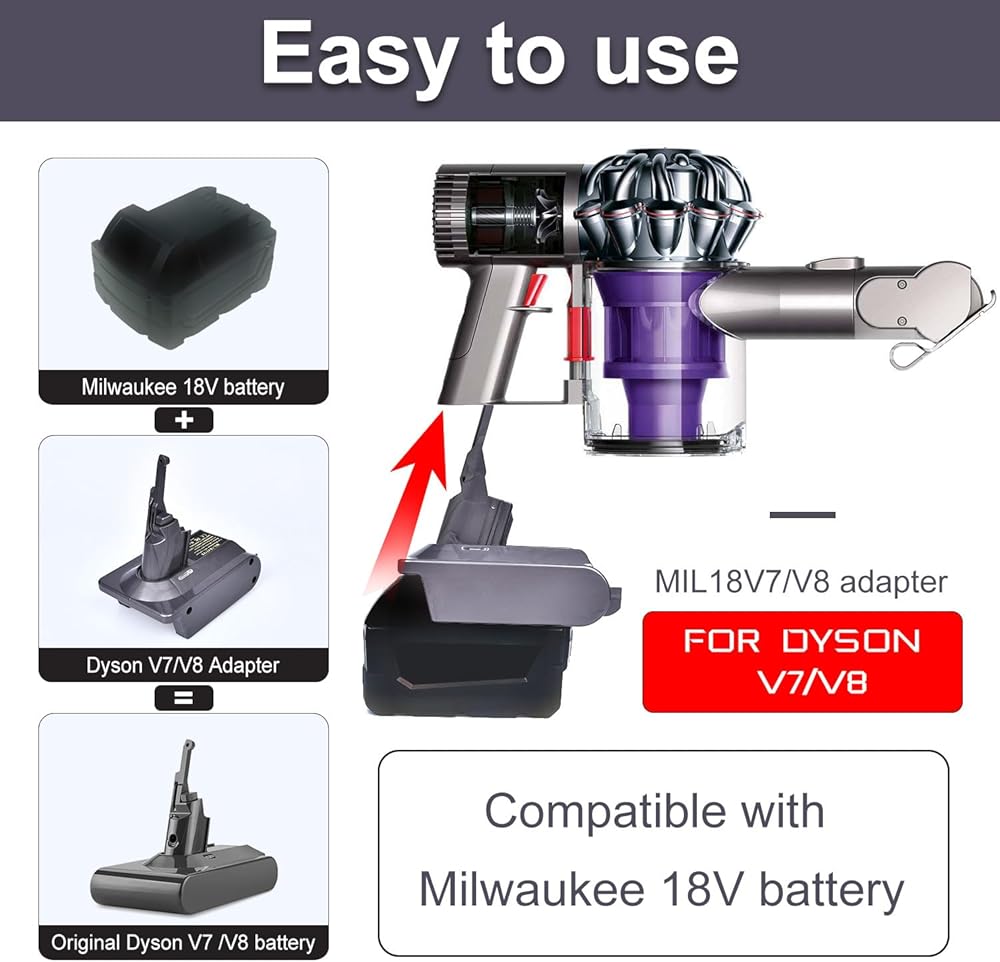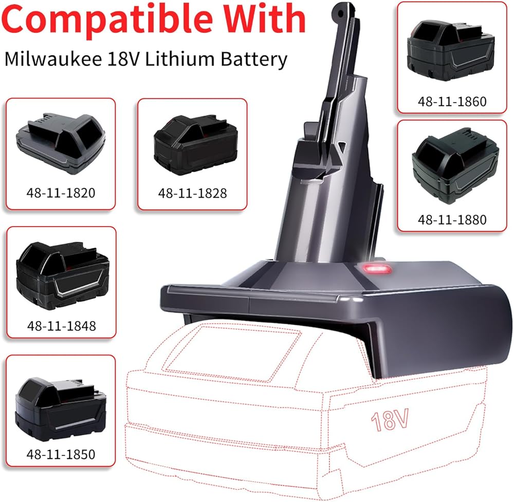 يتوافق هذا المحول مع بطارية Milwaukee18V وهو البديل المثالي لبطارية Dyson V8. محول فقط، لا بطارية.