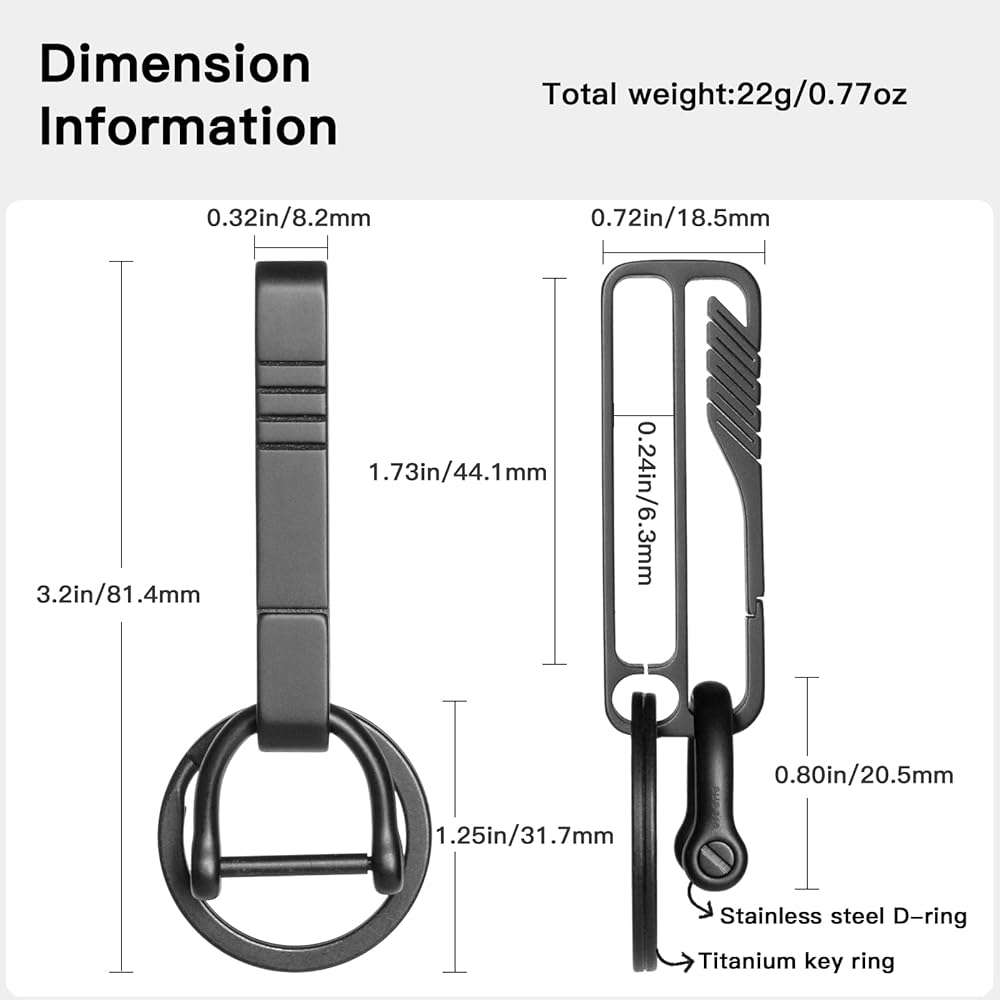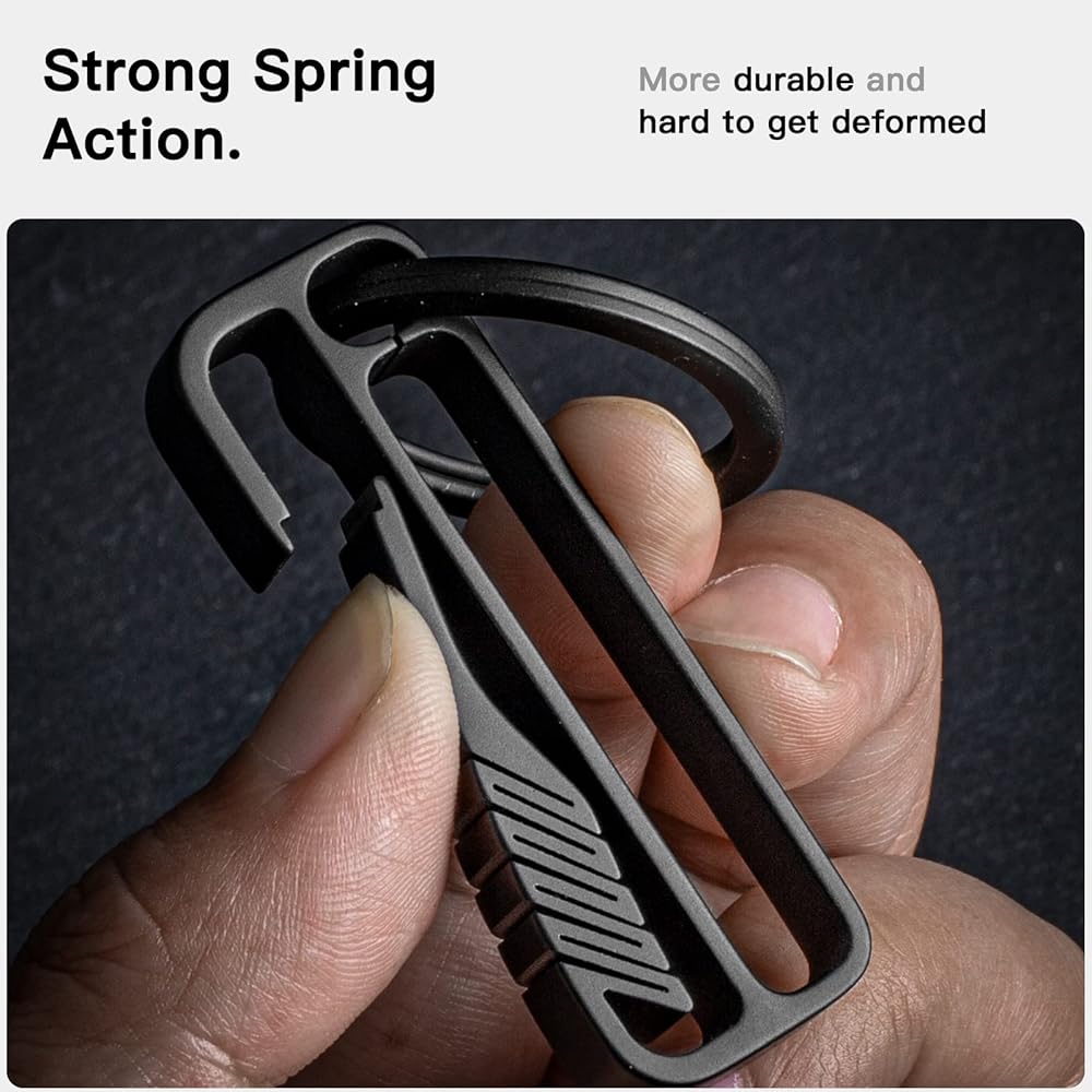 • مادة عالية الجودة: مشبك سلسلة المفاتيح الخاص بنا مصنوع من سبائك التيتانيوم القوية للاستخدام الدائم مدى الحياة، خفيف الوزن للغاية (0.47 أونصة)، قوة 4x من الفولاذ المقاوم للصدأ، غير قابل للتآكل ورائحة غير معدنية