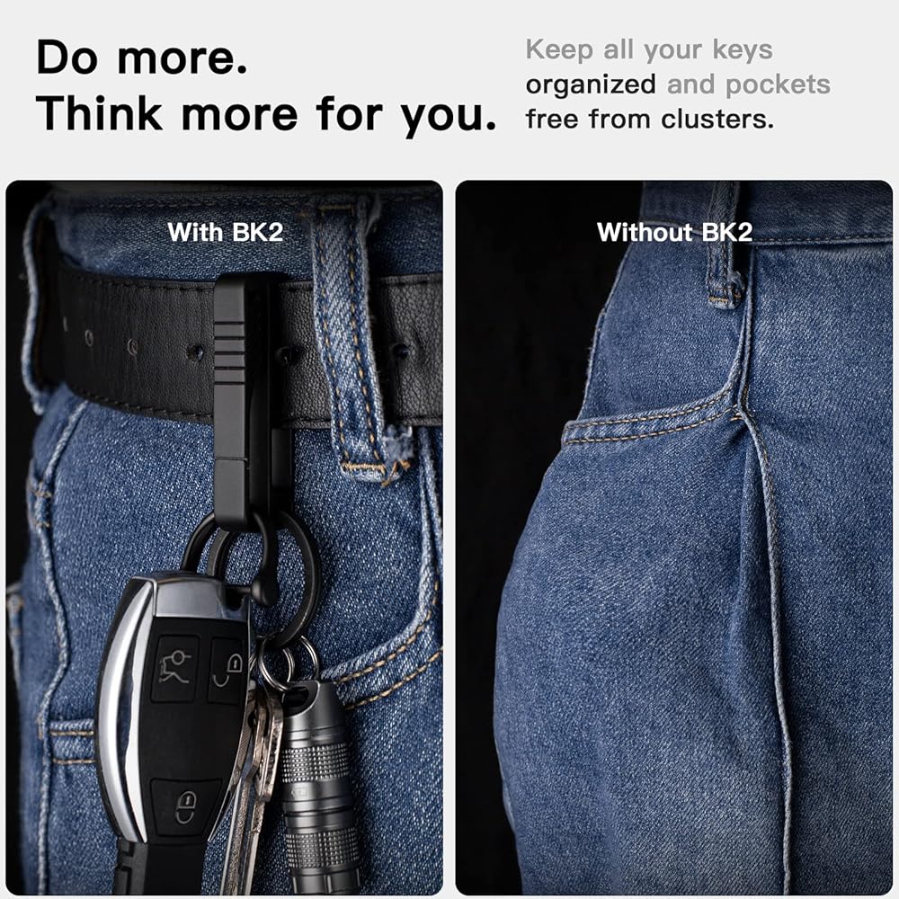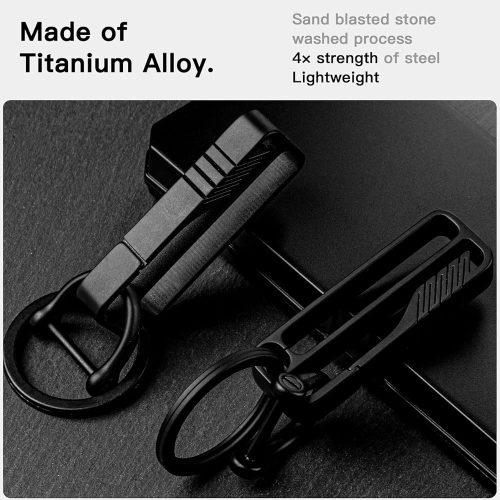 سلسلة مفاتيح بحلقة حزام TISUR، سلسلة مفاتيح حزام تيتانيوم ممتازة، مشبك حزام حامل للمفاتيح مع حلقة مفاتيح قابلة للفصل وحلقة على شكل حرف D للرجال (BK2)