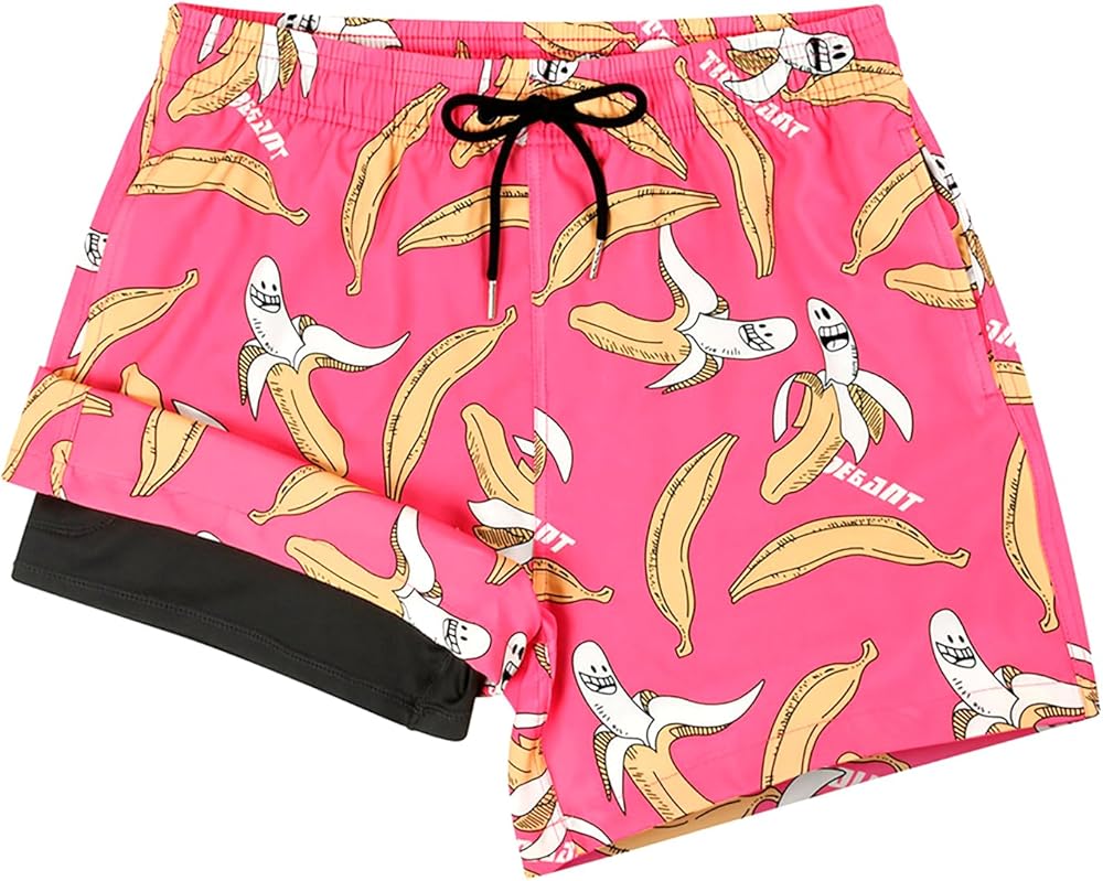 سروال سباحة رجالي مع بطانة ضاغطة وجيب شورت شاطئ قابل للتمدد سريع الجفاف