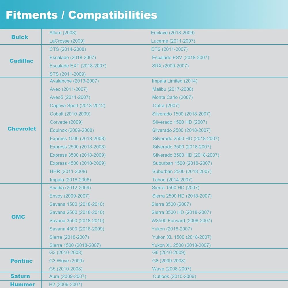 13586335 مستشعر نظام مراقبة ضغط الإطارات مستشعر TPMS 315 ميجا هرتز (عبوة من 4) - بديل لـ - 2007-2014 بويك 2006-2014 كاديلاك 2006-2015 تشيفي 2007-2015 جي إم سي 2008-2010 بونتياك