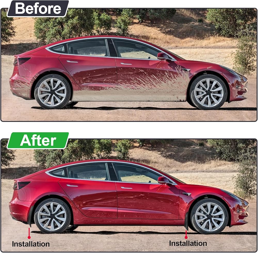 ✅ يوفر واقي الطين حماية قوية لسيارة Tesla Model Y، والمركبات الأخرى على الطريق والمشاة، من الرمال المتطايرة والثلج والصخور والحطام. يقلل من تلف الطلاء ويحسن سلامة القيادة