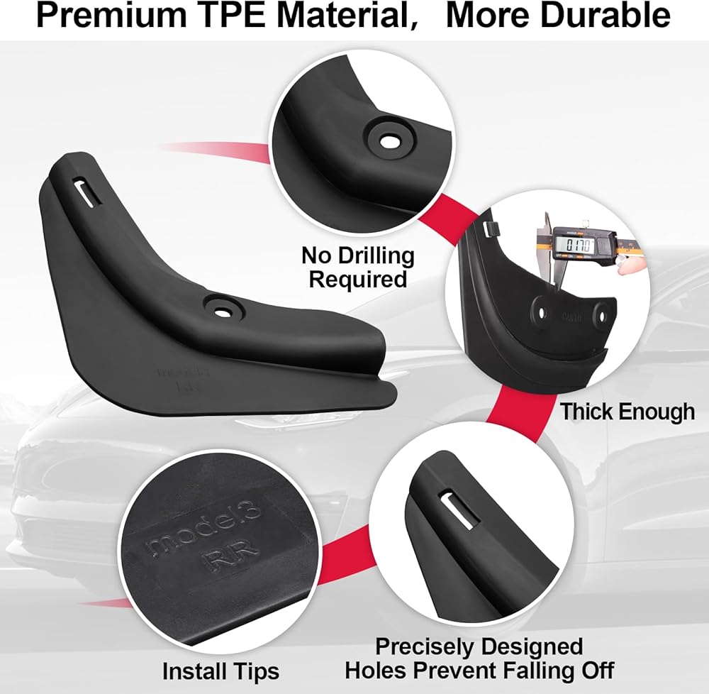 ✅ أغطية الطين المطاطية سبورتار مصنوعة من مواد TPE مطورة، مما يجعلها أكثر متانة ومقاومة لجميع الأحوال الجوية. مجهزة بمسامير عالية الجودة، مما يجعل التثبيت المباشر على فتحات المسامير الأصلية لجهاز Tesla Model Y الخاص بك أسهل بكثير