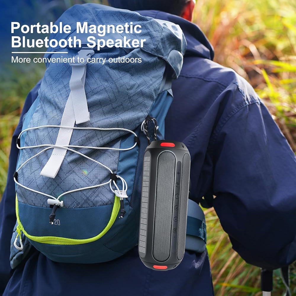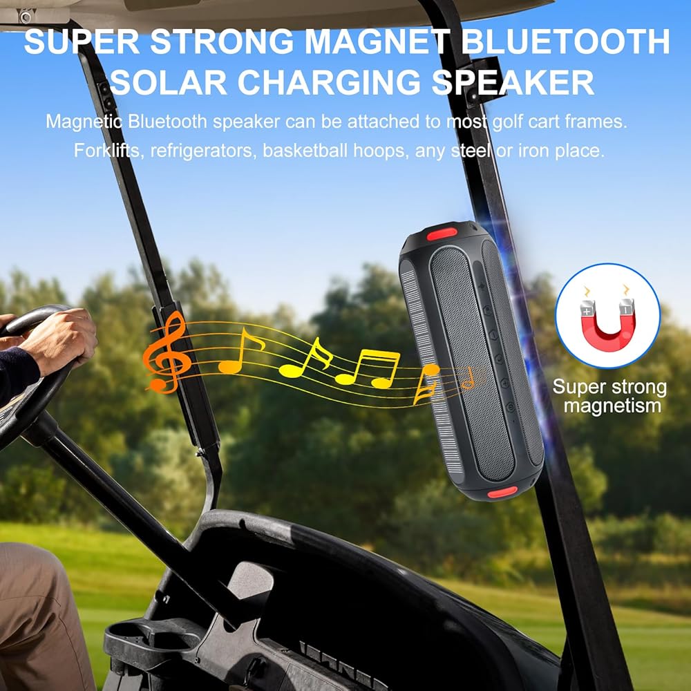 مكبر صوت بلوتوث مغناطيسي من PARKVISION لعربة الجولف - مكبر صوت خارجي لعربة الجولف - مكبر صوت جولف مقاوم للماء IPX7 - بطارية مدمجة 5000 مللي أمبير في الساعة - مكبر صوت محمول بالطاقة الشمسية - 30 وات بصوت عالٍ مع بطارية 24 ساعة