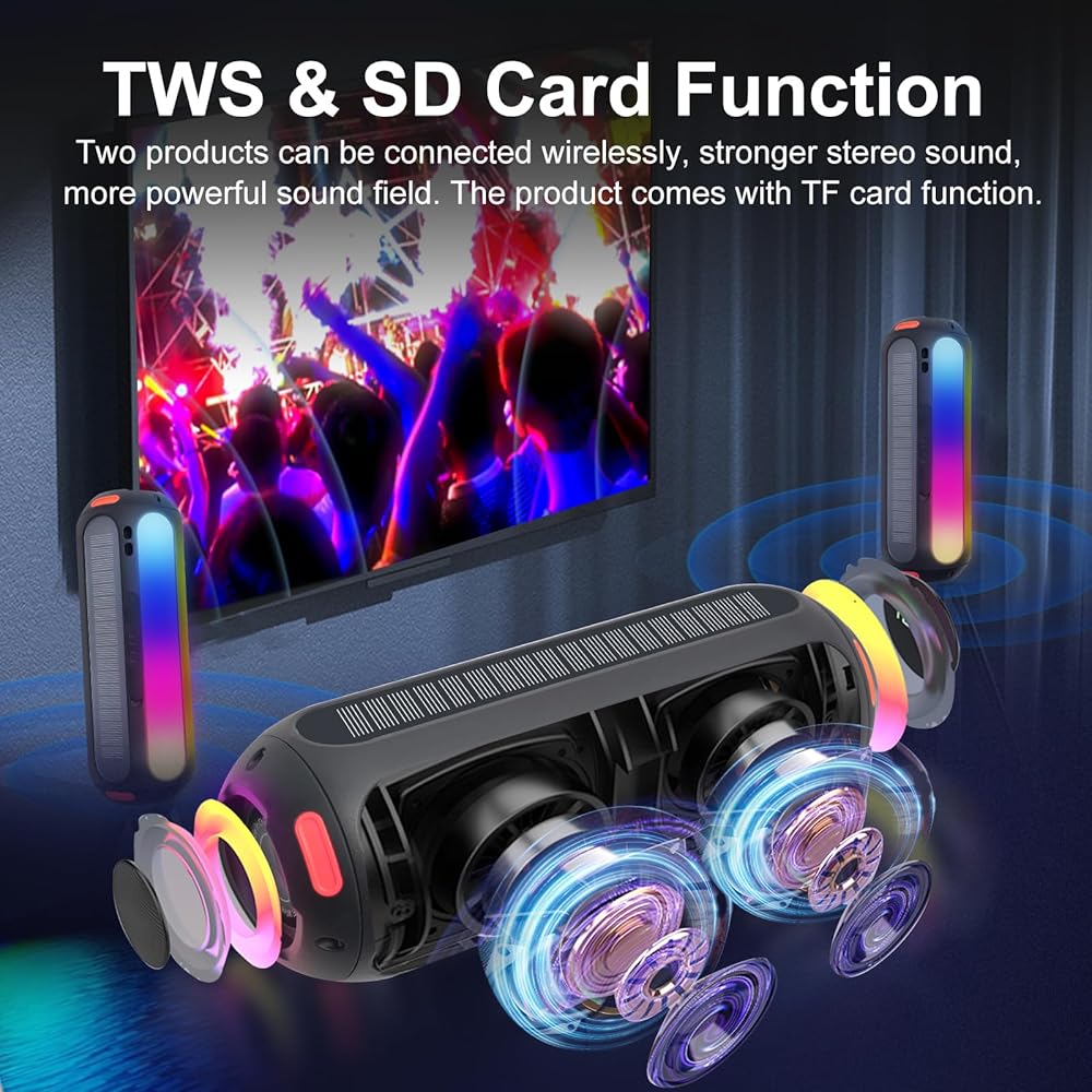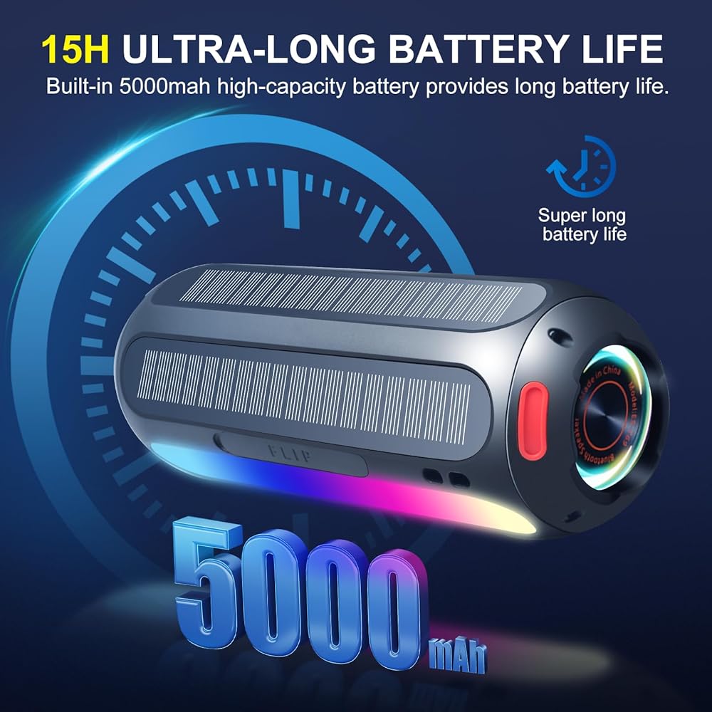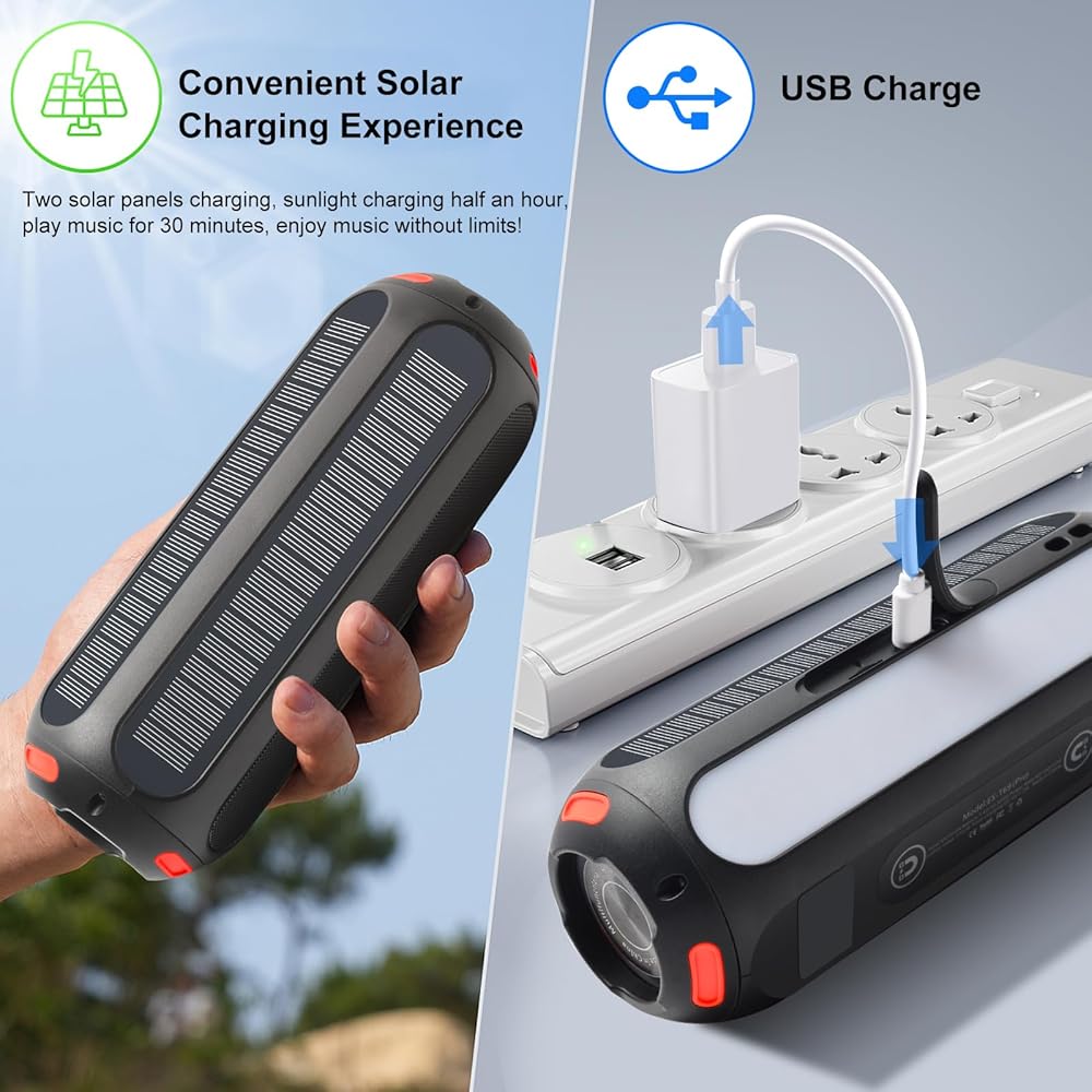 مكبر صوت بلوتوث محمول يعمل بالطاقة الشمسية: مزود بلوحين شحن بالطاقة الشمسية، يمكنك الاستمتاع بالموسيقى عالية الجودة في أي وقت وفي أي مكان. نصف ساعة من الشحن في ضوء الشمس، وتشغيل الموسيقى لمدة 50 دقيقة، والاستمتاع بالموسيقى بلا حدود! يعد مكبر الصوت اللاسلكي بلوتوث PARKVISION المحمول مثاليًا للرحلات الخارجية. ※ (هذه البيانات هي البيانات المقاسة لمكان ميلاد المنتج، والاستخدام الفعلي اعتمادًا على المنطقة والموسم وشدة ضوء الشمس وحجم الصوت سيكون له انحراف)