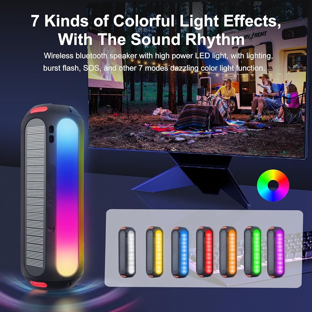 عرض الضوء الملون RGB: مكبر الصوت اللاسلكي لعربة الجولف LED ليس مجرد مكبر صوت ولكنه أيضًا ضوء ليلي فريد يوفر 7 سمات مختلفة لتغيير الألوان. سبعة أضواء محيطة تنبض مع إيقاع الموسيقى، مما يوفر عرضًا ضوئيًا رائعًا. الإضاءة، والفلاش المتتابع، وSOS، وغيرها من أوضاع وظيفة الإضاءة الملونة المبهرة.