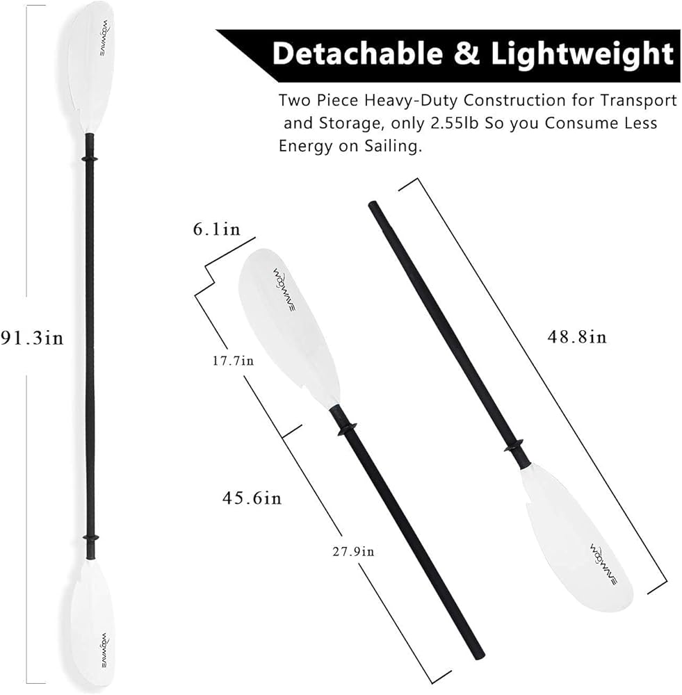 ☞【مادة متينة】مجداف الكاياك من WOOWAVE مع عمود ألومنيوم قوي وشفرات من الألياف الزجاجية المعززة لزيادة مقاومة التآكل ومقاومة التآكل، ومنع الانزلاق، وتعزيز الاحتكاك وسيبقيك تجديفًا طوال اليوم.