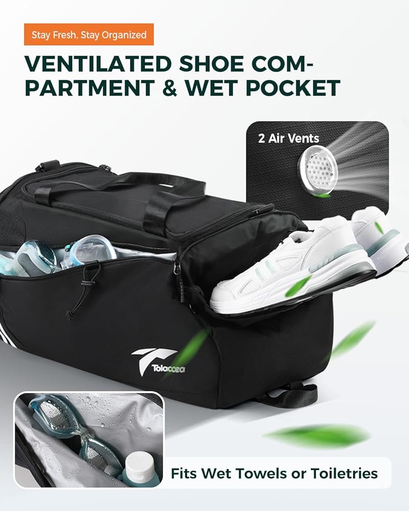 【حقيبة ظهر مع حجرة منفصلة للأحذية وحجرة مبللة】تم تجهيز حجرة الأحذية المنفصلة بفتحتين للهواء للحفاظ على نظافة الحقيبة القماشية وتهويتها. حجرة رطبة منفصلة مقاومة للماء: قم بتخزين الملابس أو معدات السباحة بعد التدريب دون أن تتبلل بقية أغراضك.
