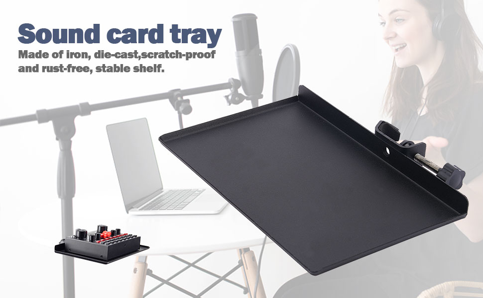 صينية بطاقة الصوت، حامل رف معدني، مشبك هاتف، حامل ميكروفون حديدي، حامل ثلاثي القوائم مباشر، علبة بطاقة الصوت، رف ثابت للبث (أسود)