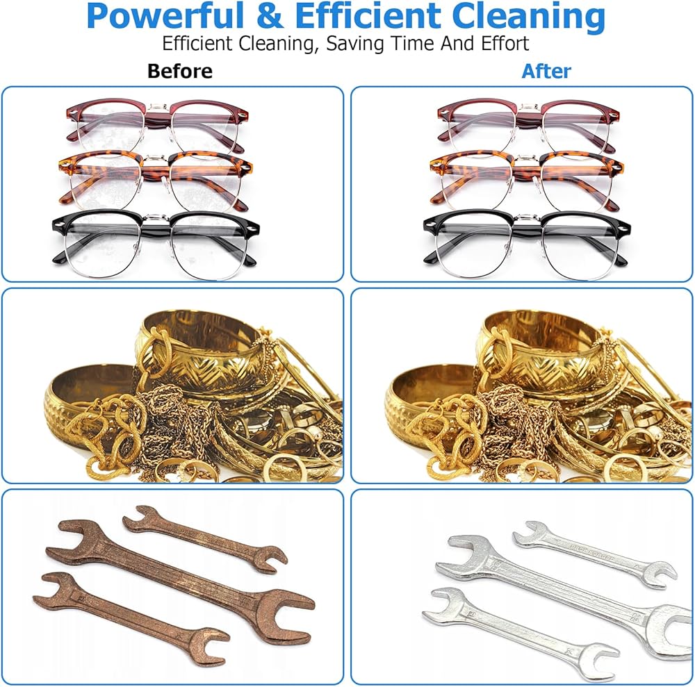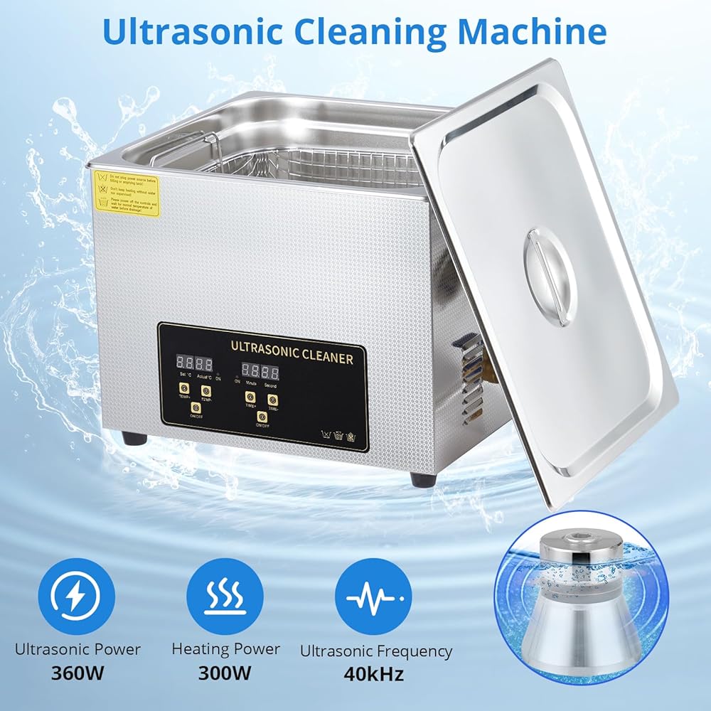 [تأثير تنظيف قوي] يستخدم منظف المجوهرات بالموجات فوق الصوتية محول طاقة بالموجات فوق الصوتية 360 وات (6 * 60 وات) من الدرجة الصناعية، تردد بالموجات فوق الصوتية 40 كيلو هرتز، وتشكيل تدمير قوي بالموجات فوق الصوتية للأوساخ غير القابلة للذوبان وجعلها منتشرة في محلول التنظيف. يقوم منظف الأجزاء بالموجات فوق الصوتية بتنظيف السطح بأمان ويزيل جميع البقع والتراكمات.