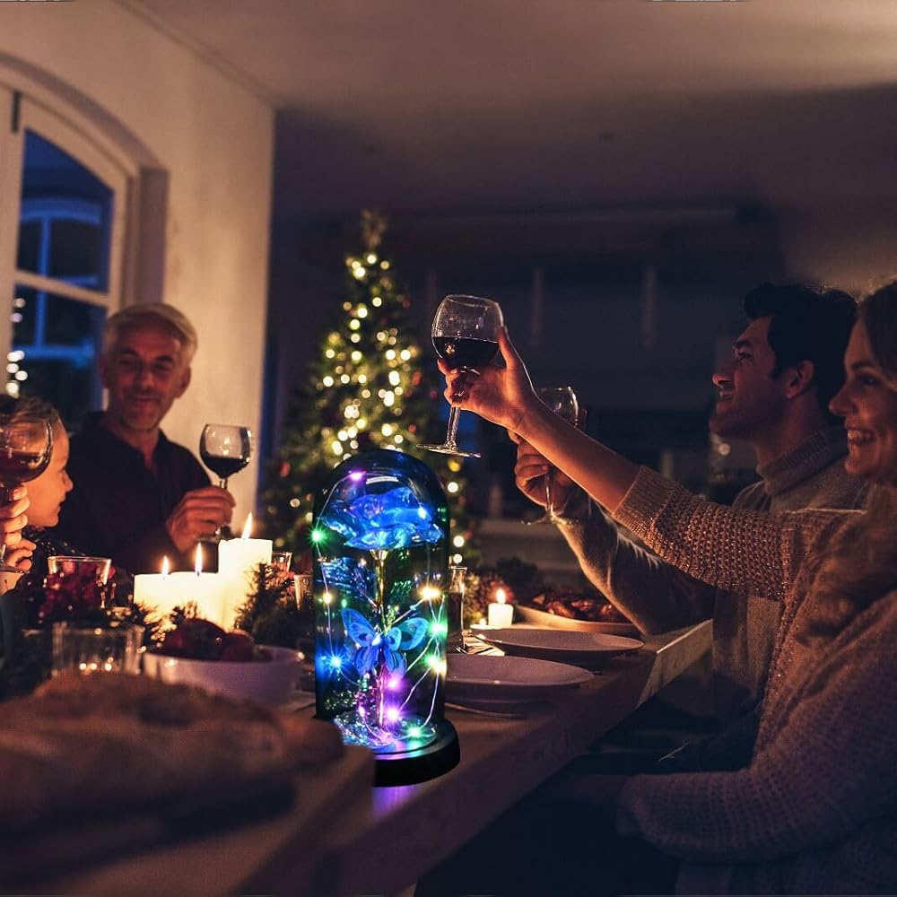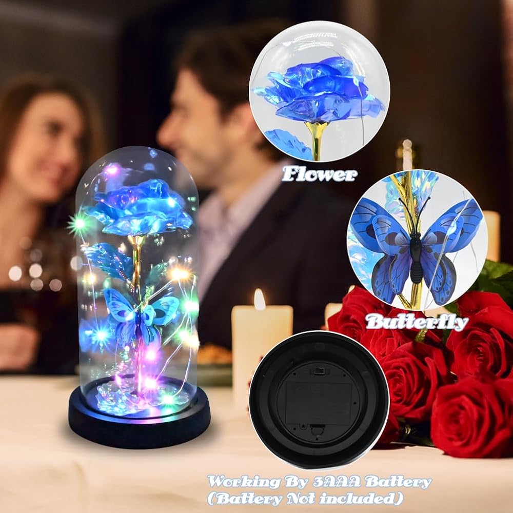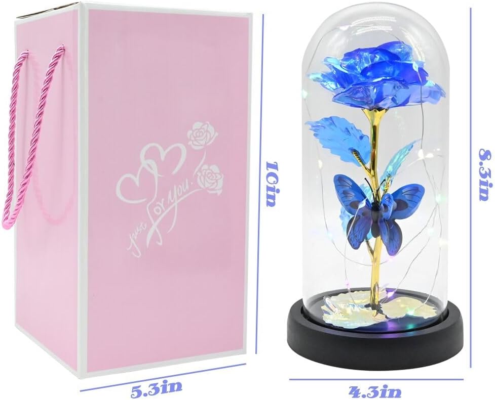 • Eternal Rose Gift: Galaxy Butterfly Rose is protected by a tough glass dome. Glass dome is made of high borosilicate glass, crystal clear, hard texture. Preserved Flowers Rose is made of special material, which will keep in full bloom forever.