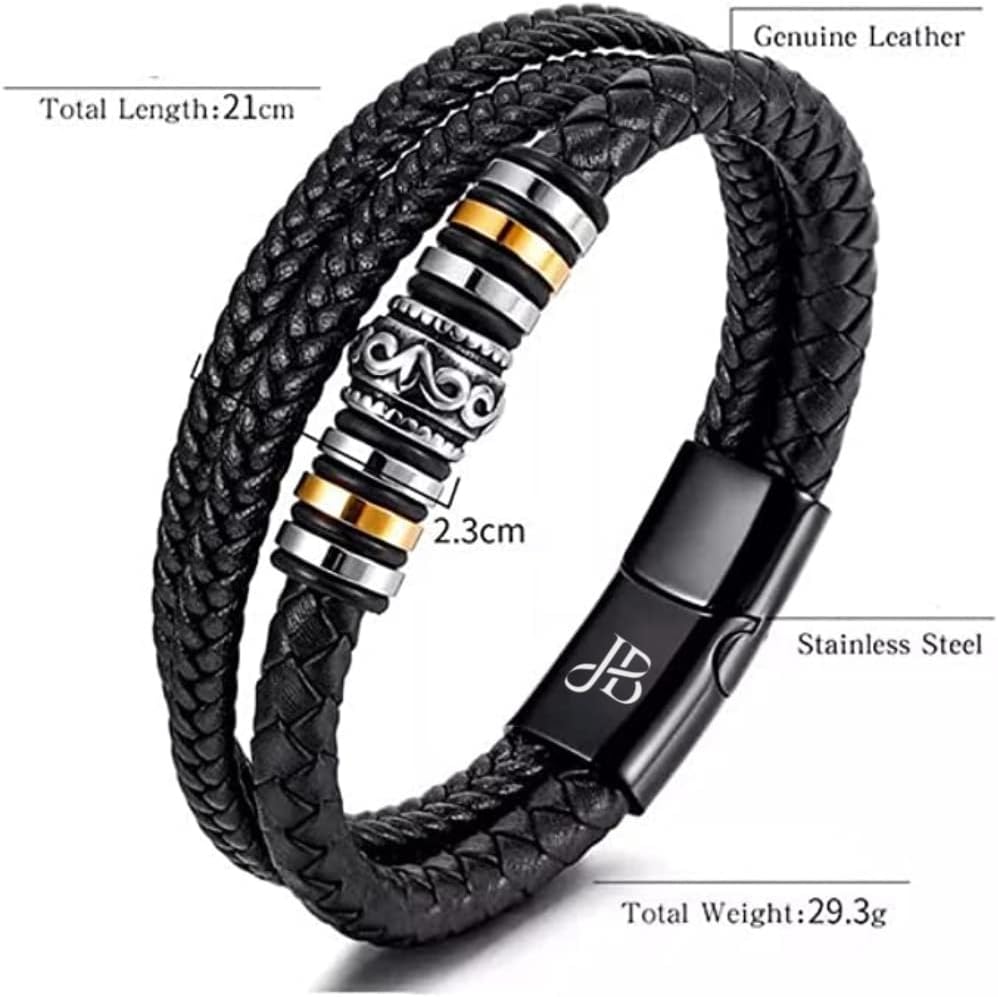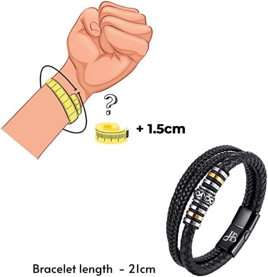 الحجم - يوفر سوارنا الجلدي المضفر للرجال تصميمًا بسيطًا وأنيقًا، بطول 21 سم (8.2 بوصة). هذا السوار هو رفيقك المثالي لكل الأشياء الجيدة في الحياة. سواء كانت ليلة قصيرة مع الأصدقاء أو يوم طويل في ملعب الجولف، يمكنك الاعتماد على هذا السوار للتأكد من مظهرك الأنيق والشعور بالراحة دائمًا.