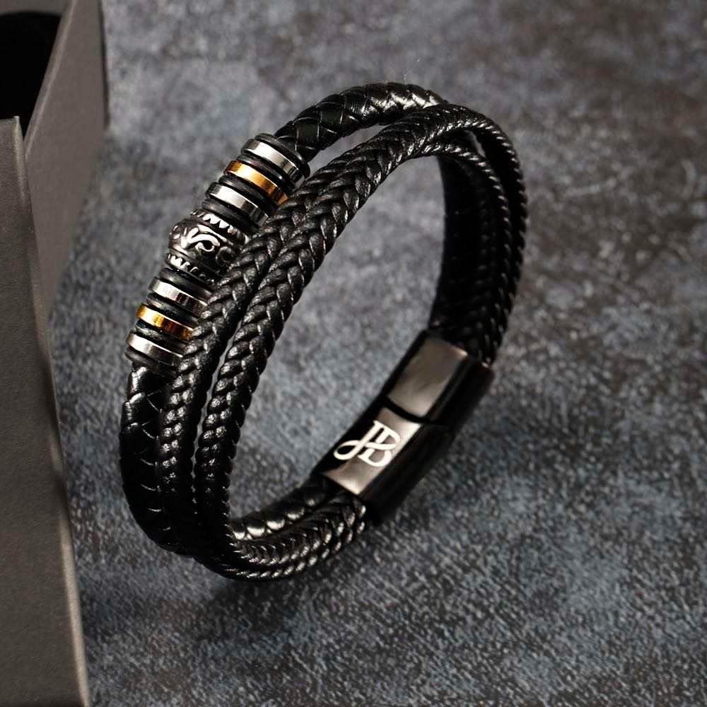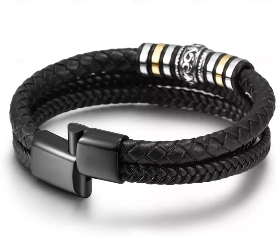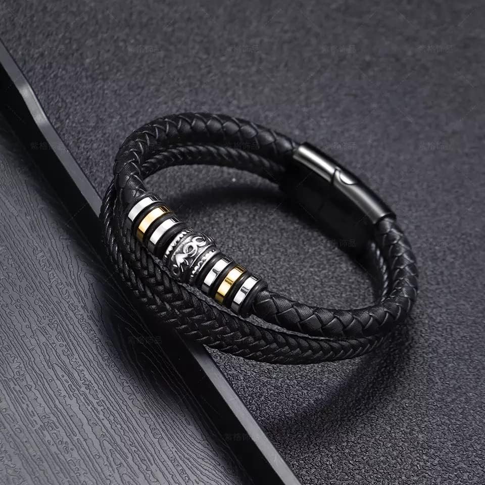 الطراز - بالنسبة للرجل الراقي، لا تبحث سوى عن سوارنا الفاخر. بفضل الجلد الأصلي الفاخر والتصميم المضفر، يعد هذا الإكسسوار المثالي لأي مناسبة. المشبك والصندوق المصنوعان من الفولاذ المقاوم للصدأ يجعلها هدية مثالية.