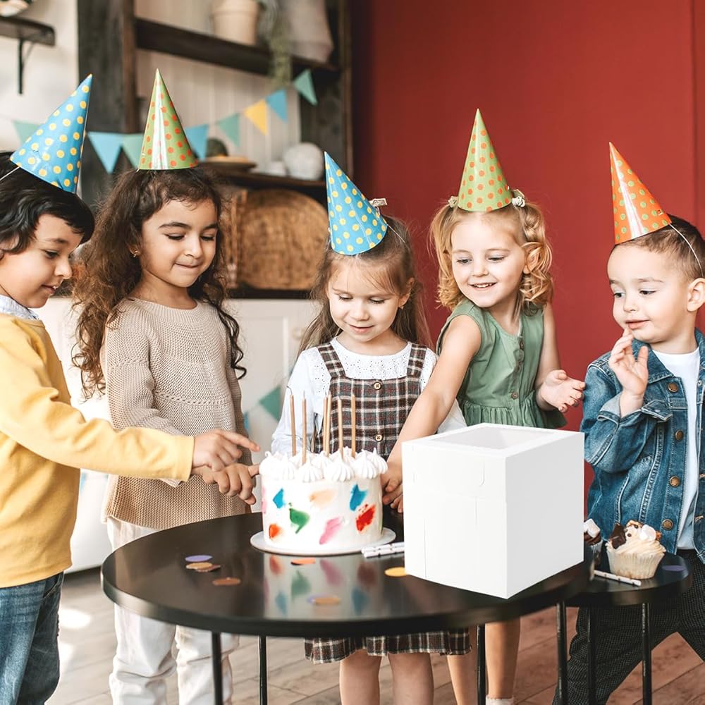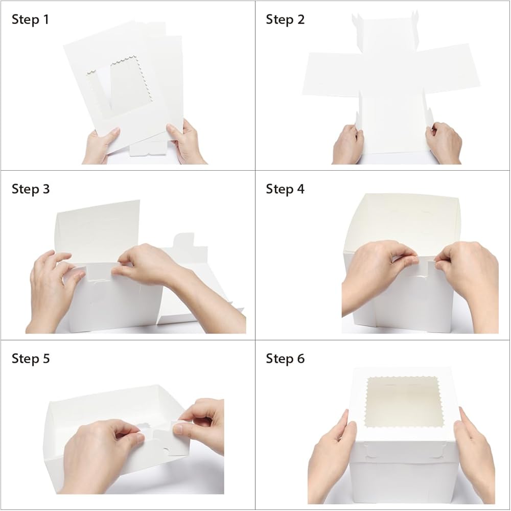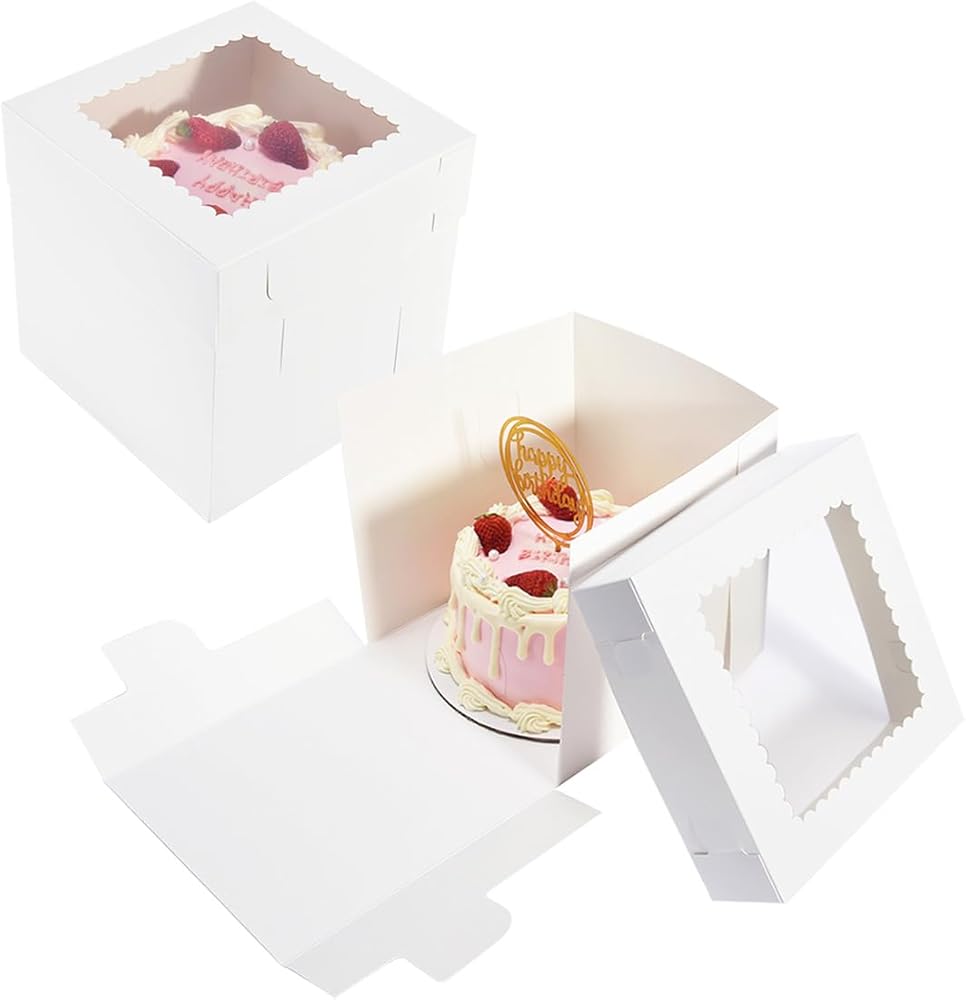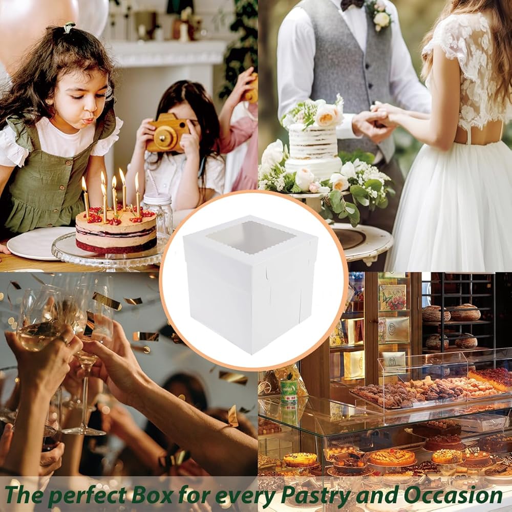 الحجم المثالي: 20 قطعة من صناديق الكيك البيضاء مقاس 8 × 8 × 8 بوصة، و20 ملصقًا وتعليمات. وهو مناسب للكعك بحجم 6 بوصات، والكعك ذو الطبقات، والمخابز، والحلويات، والفطائر، والمعجنات، والبسكويت، والدونات، إلخ.