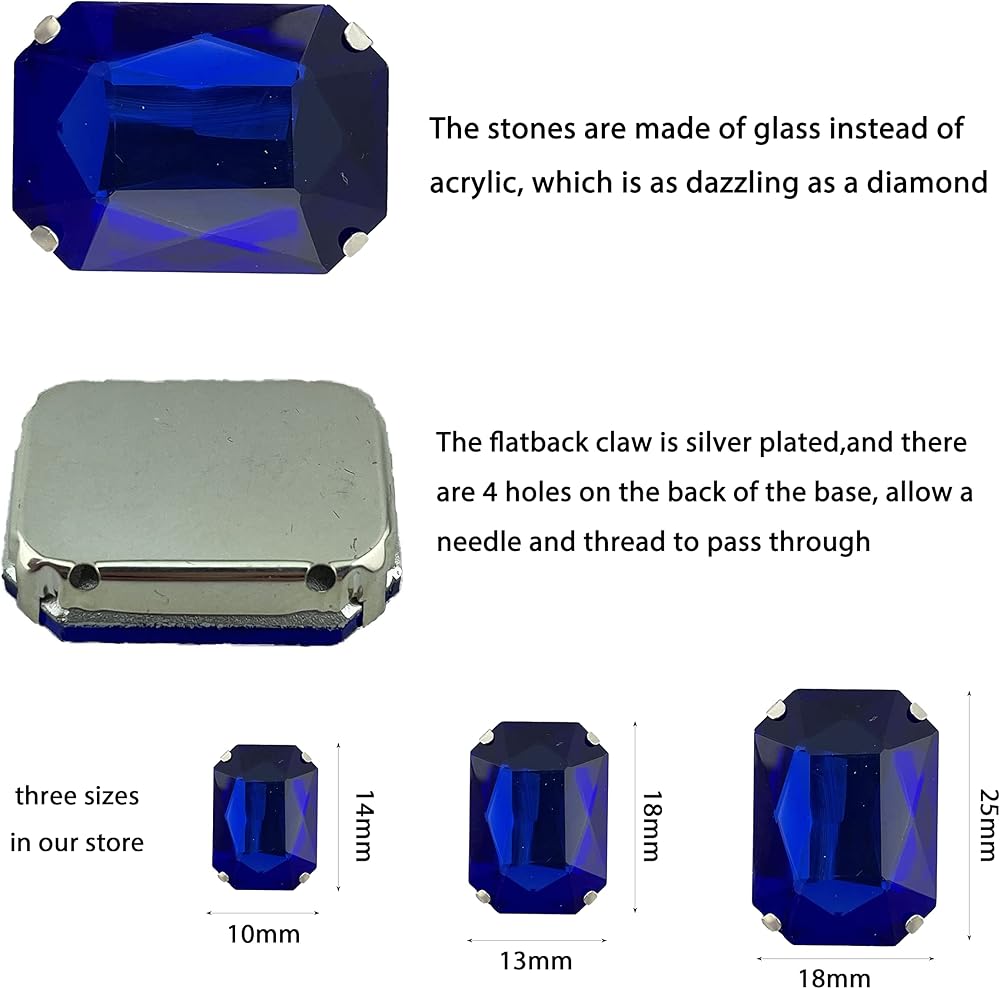 Package include:Total 12 pcs rectangle sew on rhinestone.
