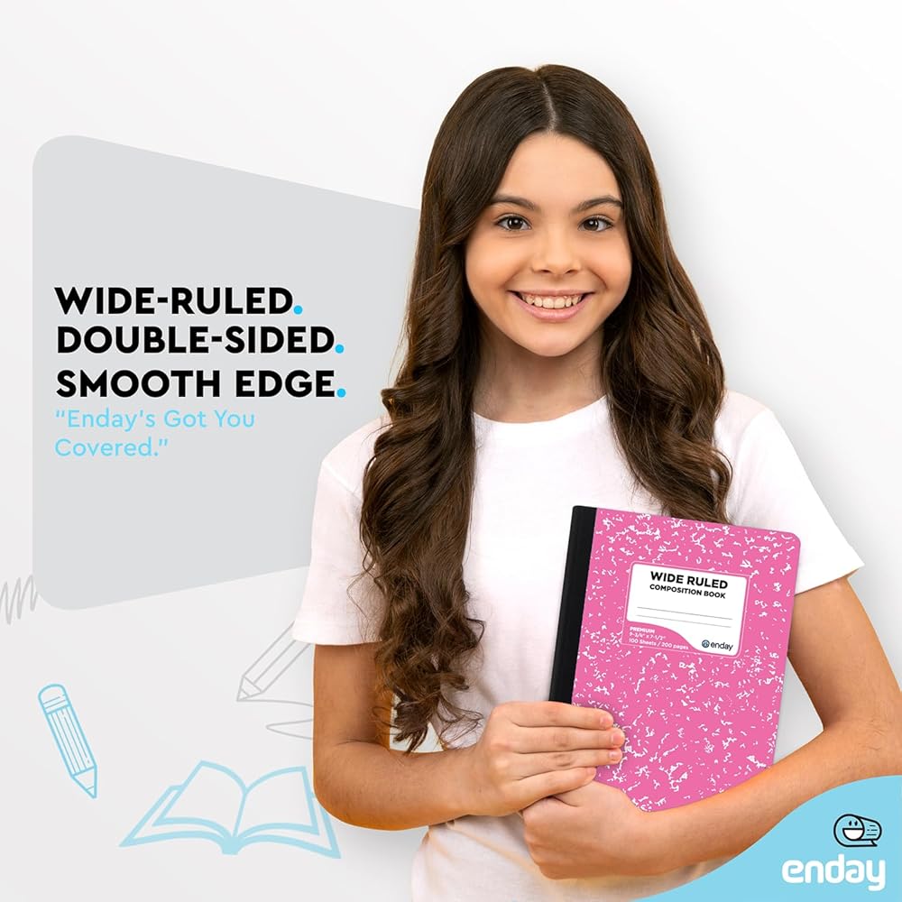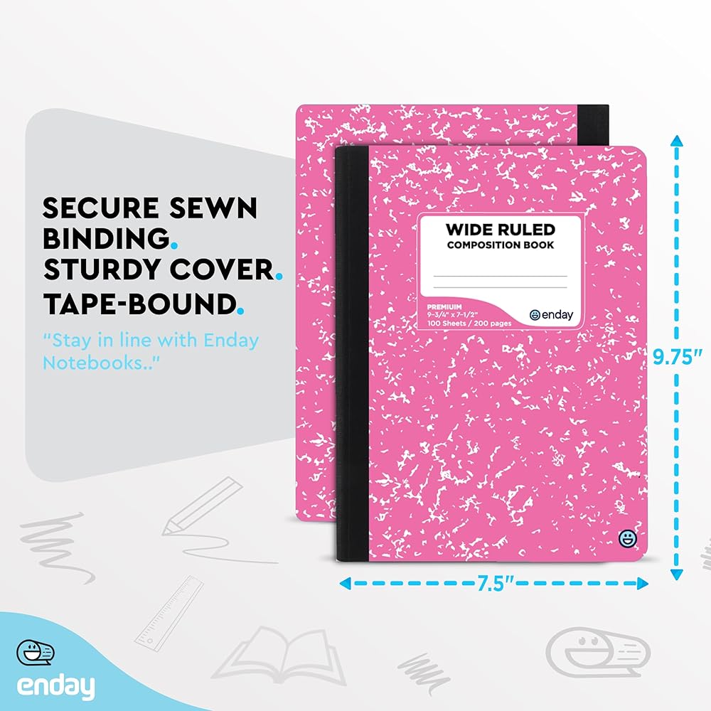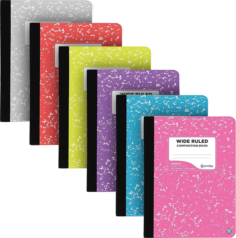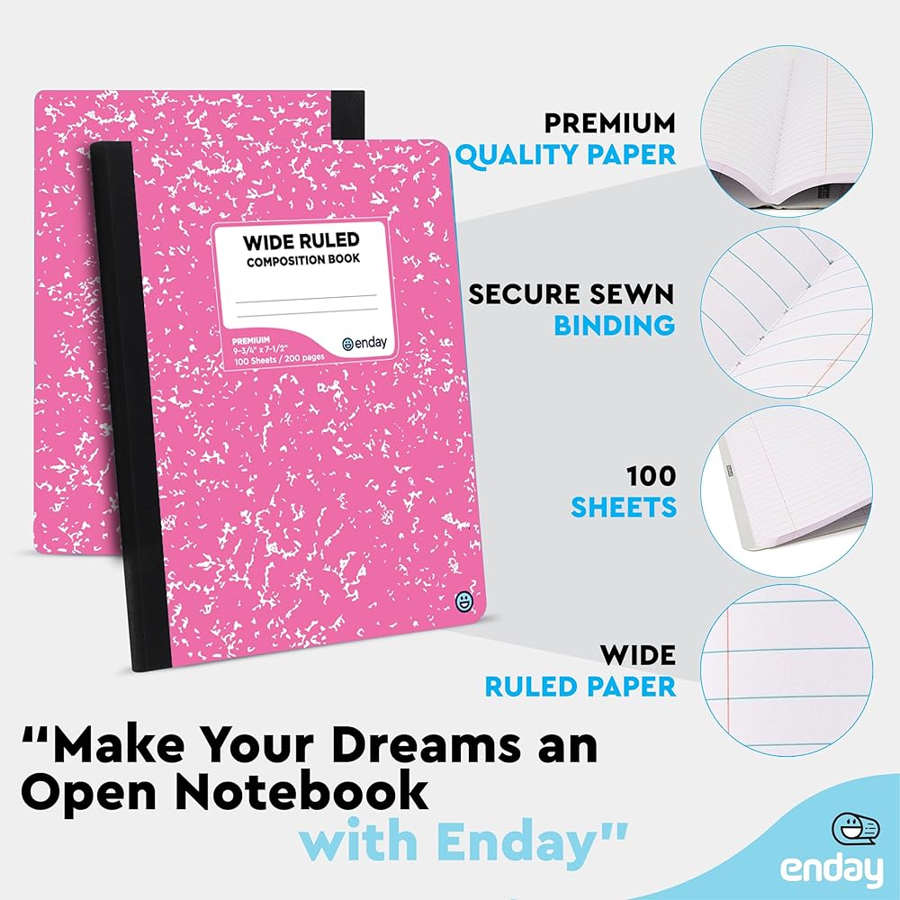 دفاتر ملاحظات تكوين ورق مسطر واسع، أغطية دفاتر ملاحظات تكوين رخامي ملون، 100 ورقة (200 صفحة) كتب تكوين، دفاتر ملاحظات رخامية مسطرة واسعة للمدرسة، وردي - أحمر - رمادي - أخضر - بواسطة Enday