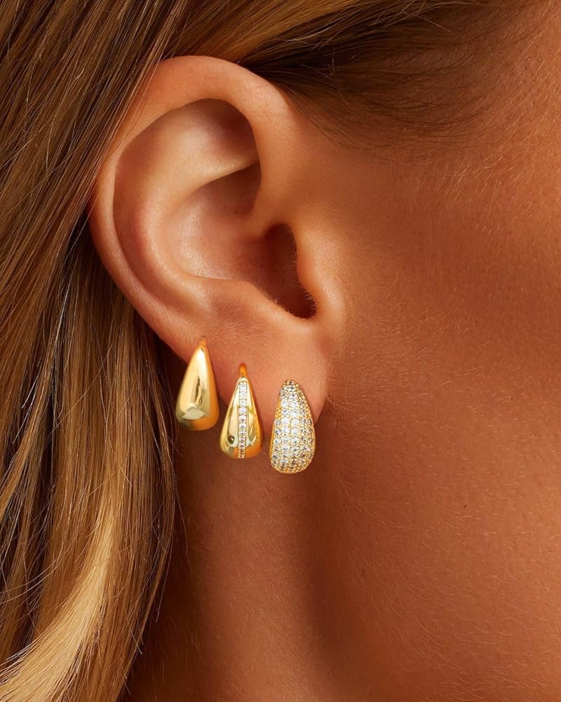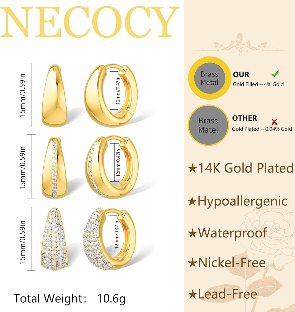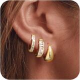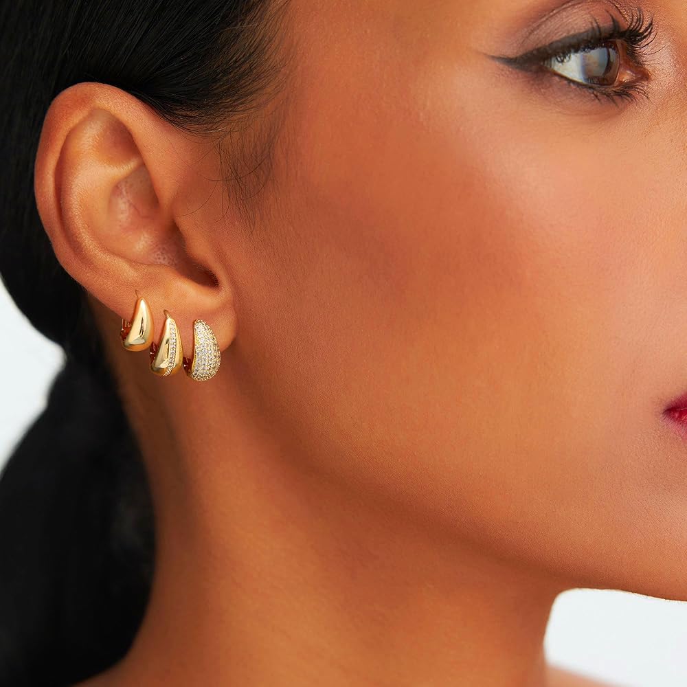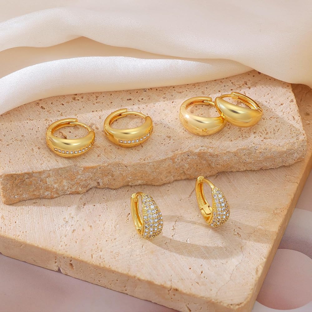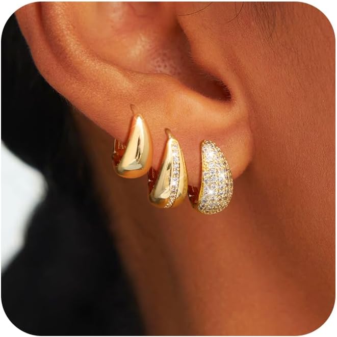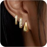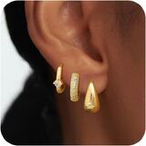 【مجموعة أقراط ذهبية】📏: تحتوي أقراطنا الذهبية المكتنزة والطوقية للنساء على 3 أزواج مختلفة من الأقراط. 3 مجموعات من الأقراط لثلاثة فتحات، كل زوج من الأقراط مرصع بنمط مختلف من الزركونيا المكعبة، والتي يمكن دمجها في المزيد من التركيبات.