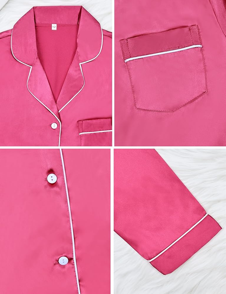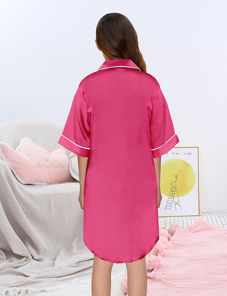 مجموعة فساتين النوم الساتان للفتيات هذه مصنوعة من مادة حريرية ناعمة الملمس وتصميم لطيف للغاية بلون سادة سيجعل طوال اليوم مثيرًا! هناك العديد من المقاسات المتاحة، يرجى الرجوع إلى الصورة الأخيرة على اليسار لاختيار المقاس قبل الطلب.