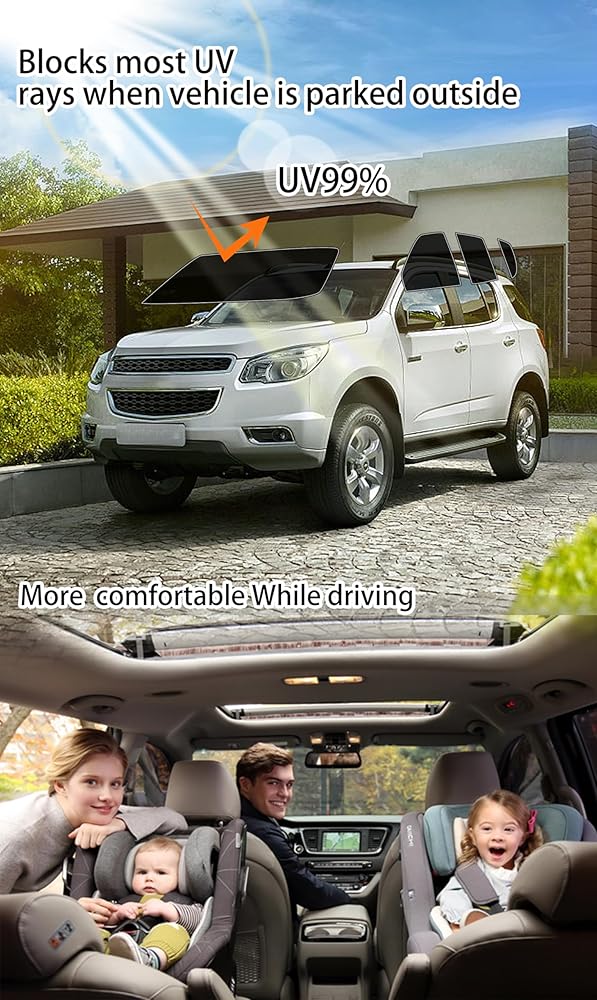 Privacy protection: when doors are closed, tint film makes windows look darker from outside the vehicle. Effectively protects the private space inside the car, and improves privacy.