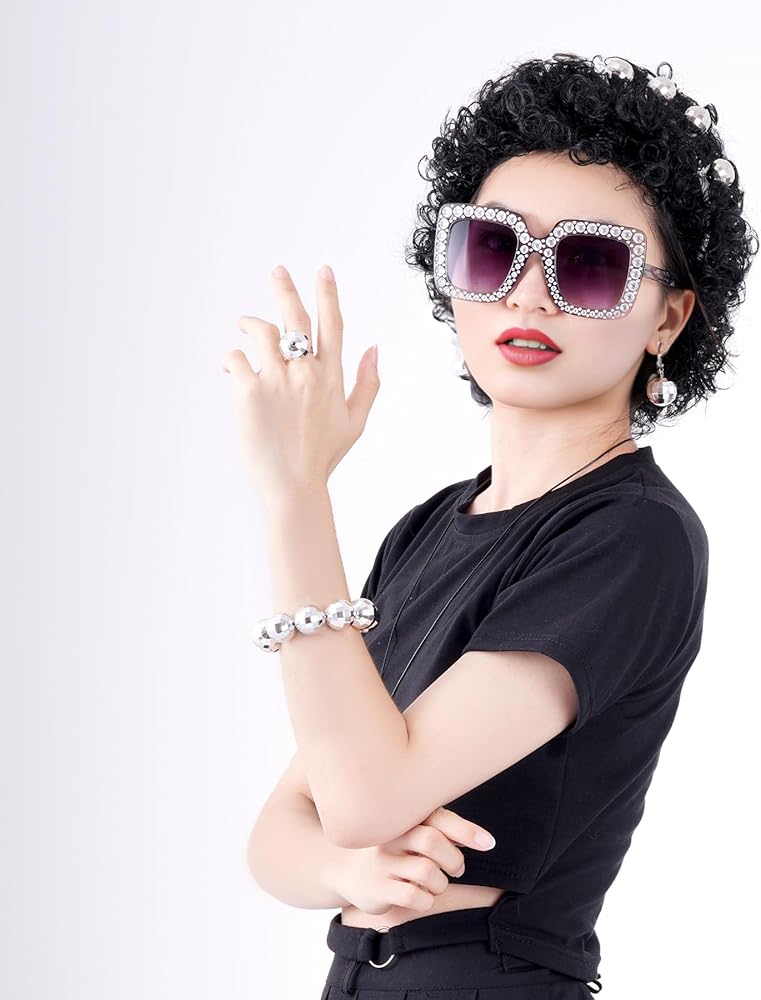 • Reliable and Comfortable to Wear: Our disco accessories set is comfortable to wear, the 1970s disco headband, necklace, bracelet, ring and earrings are made of quality alloy material, durable, lightweight and not easy to break, our retro disco sunglasses are made of premium plastic and designed with rhinestones in the frame, sturdy, reliable and comfortable to wear, and our vintage Afro women's wig is made of quality synthetic fiber, breathable and realistic, which can be used for a long time.