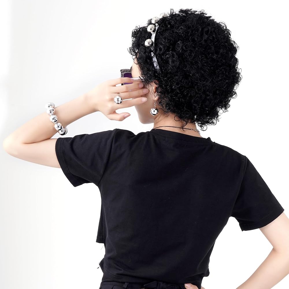 • Retro Black Disco Afro Wig: Our 70s afro short curly wigs for women is soft, breathable and durable, easy to manage, you should shake it up before putting on to make sure it fluffy and full enough, it is lightweight, natural and fits most heads, this wig can be worn in everyday life or 60's 70's disco themed parties, which makes you more cute and cool, with our retro disco black afro wig, you will be the hit of the 60's 70's disco party.