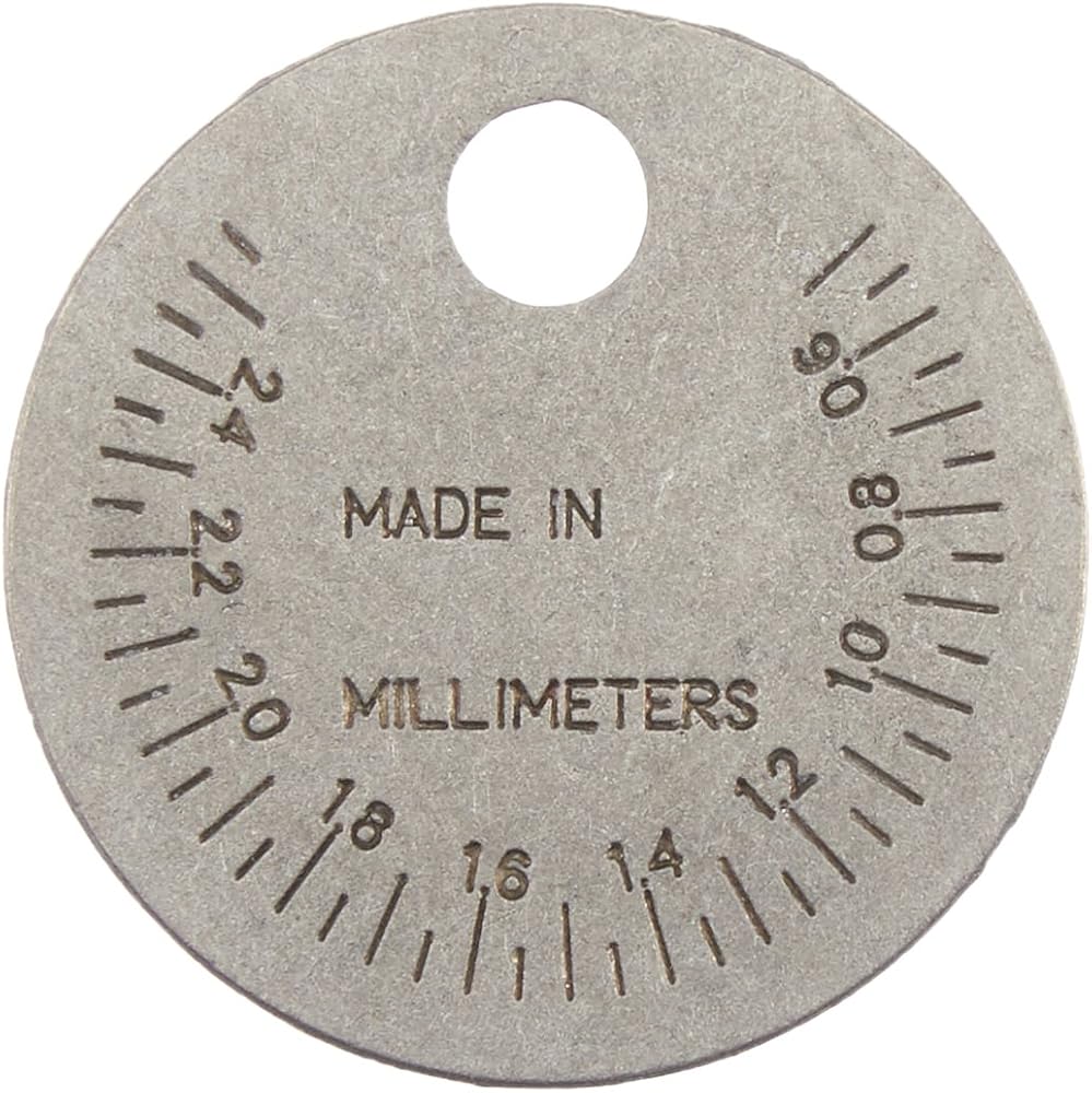 Tapered edge for gauging spark plugs. Specially designed hole with flange adjusts side wire of plug without pressuring center electrode.