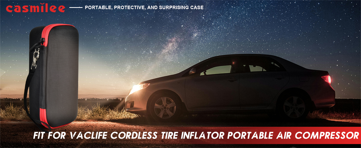 مادة ممتازة - منظم ضاغط هواء السيارة بسحاب قوي وسلس مصنوع من مادة صلبة مقاومة للرذاذ والخدش والصدمات. إن مظهر صندوق صدمات الهواء التلقائي هذا قوي بما فيه الكفاية، بالإضافة إلى مادة داخلية ناعمة، مما يوفر لمضخة الدراجة حماية مزدوجة معًا.