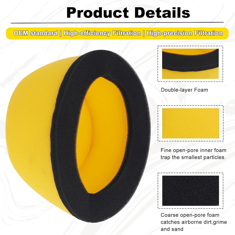 • ✅Excellent Performance -Air Filter helps eliminate contaminating of dirt,dust and debris from the carburetor and engine. It provides excellent protection against ingested dirt,improves airflow and prolongs engine life by providing clean filtered air while running.