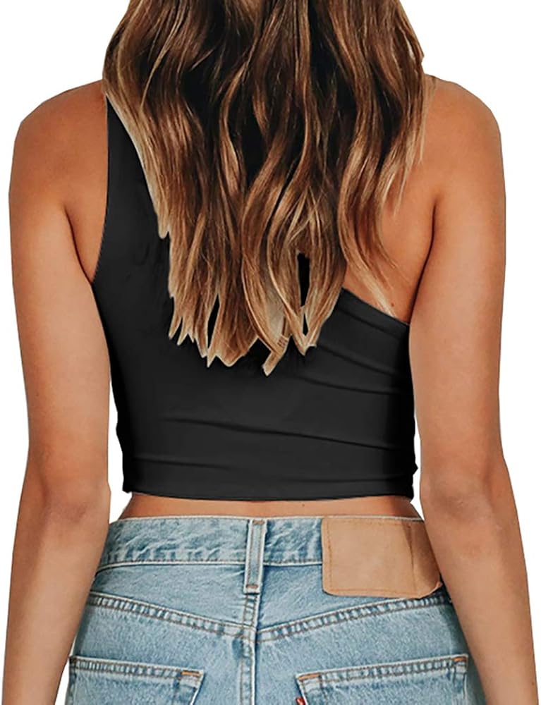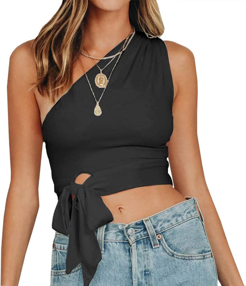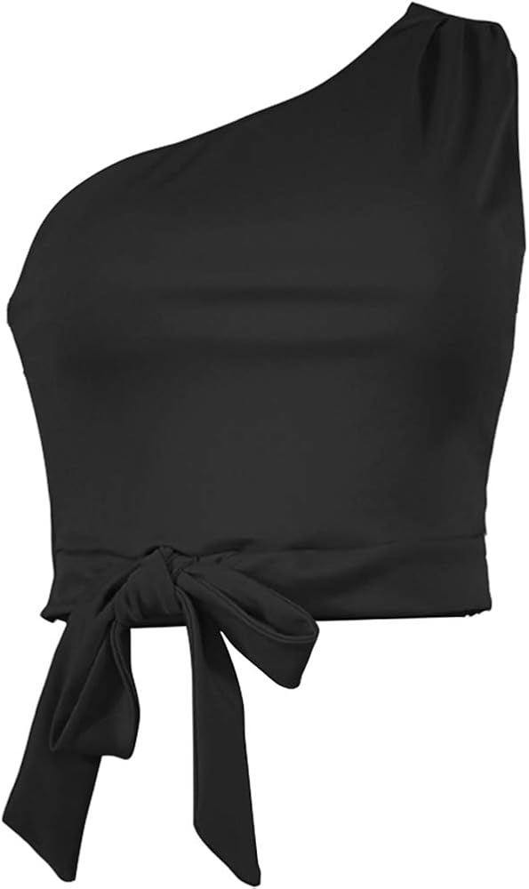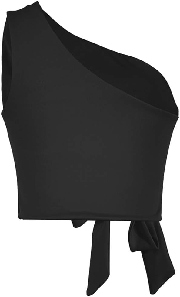 - قميص قصير مثير بكتف واحد، مع عقدة على الخصر، قميص صيفي جميل، يمكن أن يتناسب مع السراويل القصيرة والجينز وما إلى ذلك