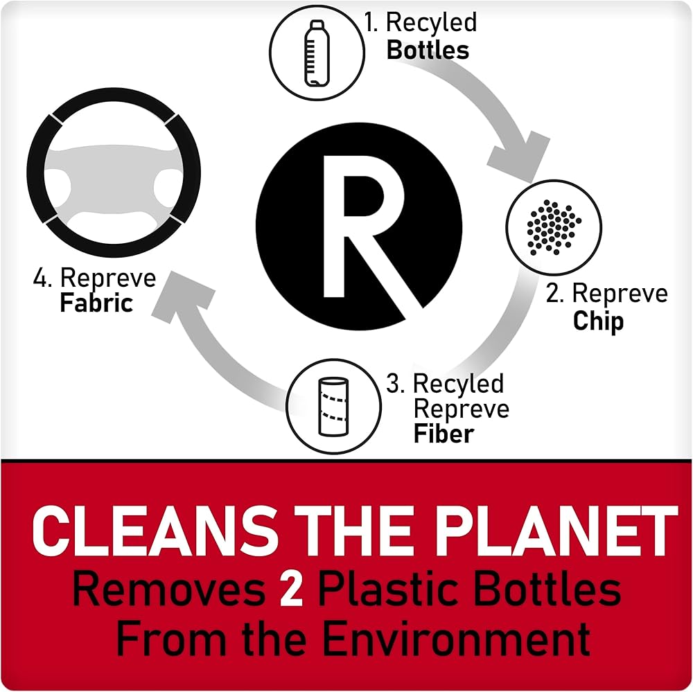 • SUSTAINABLE MATERIALS: Constructed from 100% Repreve recycled fiber, this steering wheel cover saves precious natural resources