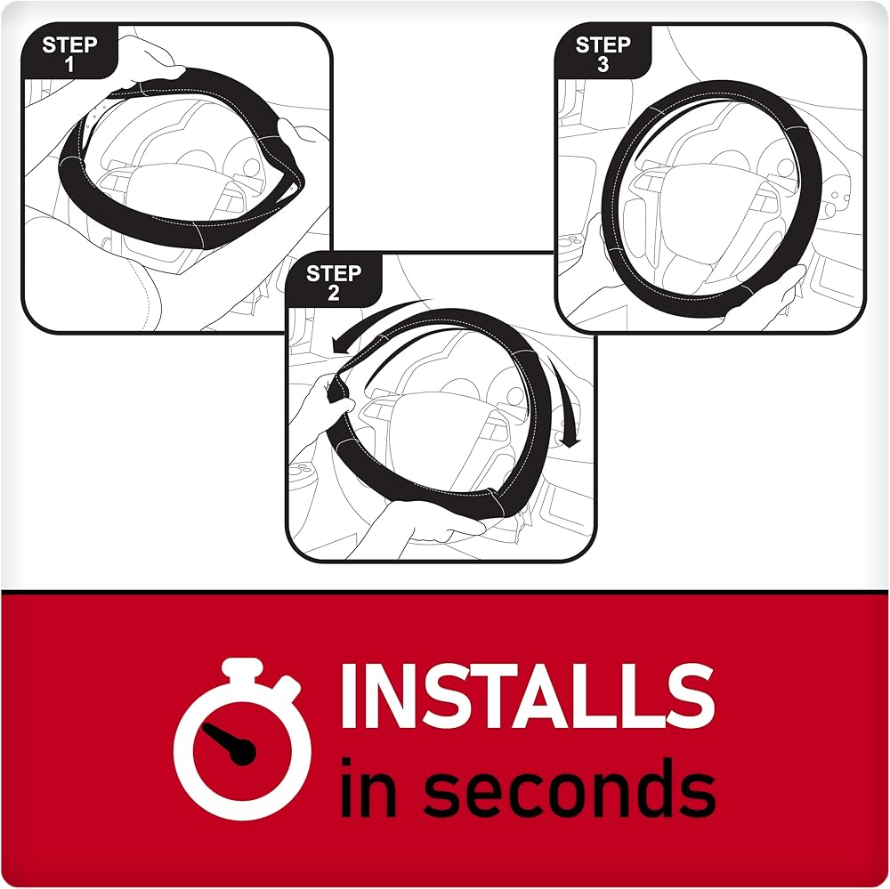 • UNIVERSAL FIT: This cover is engineered to fit most cars, trucks, and SUVs with steering wheels ranging from 14.5" to 15.5"