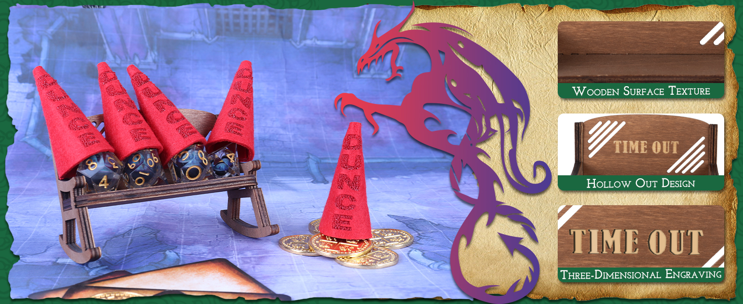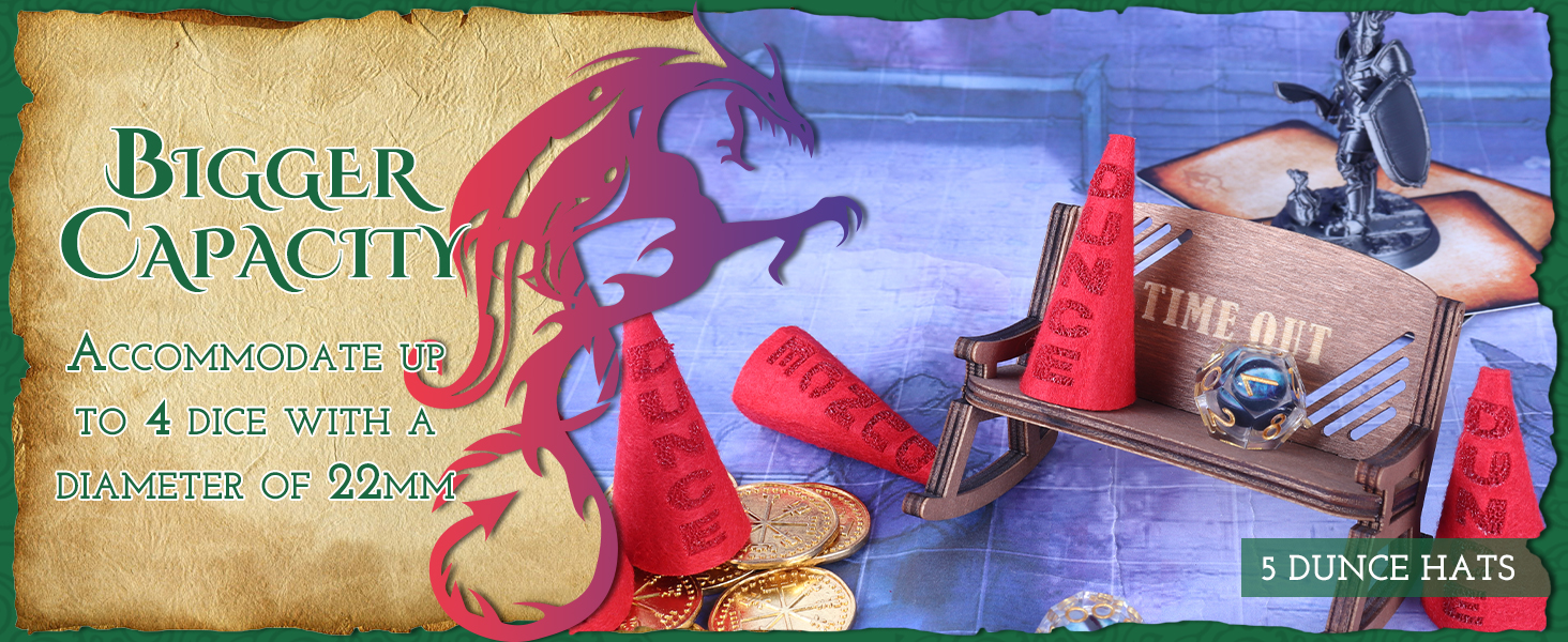 【يستوعب 4 نرد في نفس الوقت】 على عكس كراسي قضاء الوقت التقليدية، يمكن لهذا الكرسي ذو المساحة الأكبر أن يحمل ما يصل إلى أربعة نرد بقطر 22 مم في نفس الوقت. يمكنك معاقبة المزيد من النرد الخاطئ في وقت واحد. وهذا يعني أيضًا أن لدينا مساحة أكبر لحمل حجر نرد أكبر. مناسبة لكل نرد dnd تقريبًا في السوق.