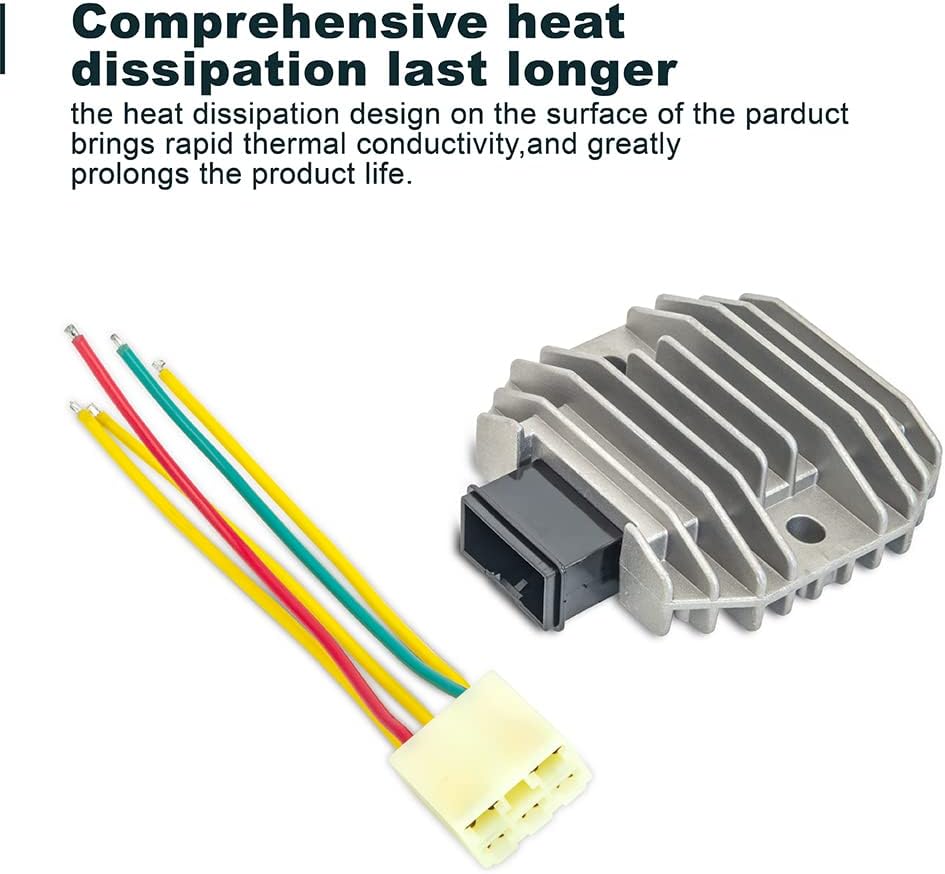 This rectifier has overheat protection, helps to dissipate excess voltage, prevents over-charging battery, improves heat sink and charging capabilities. Replace a new regulator rectifier can raised your lights brightness, improve the phenomenon of low-grade driving, the shift more smoothly, improve the ignition efficiency and make the spark plug burn more fully. It is Waterproof & Shockproof